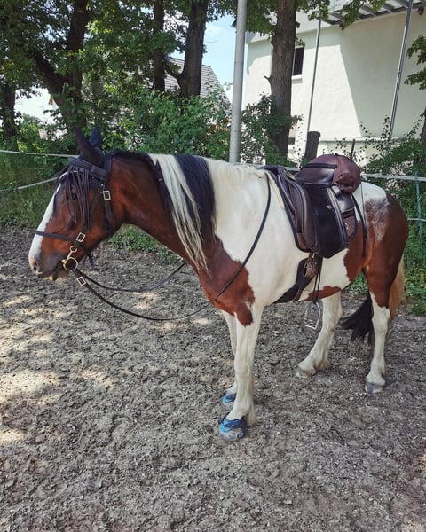 With a heavy heart, I am saying goodbye to my loyal companion Aramis after seven wonderful years. He is a beautiful, motivated Tinker cross gelding, standing approximately 14.8 hands (148 cm), born on January 6, 2012. Aramis is a true all-rounder: • Dressage • Jumping • Trail riding and long-distance riding • Extreme trail • Groundwork and handling He loves to be challenged, is brave, curious, and always eager to explore new challenges with his handler. With a calm hand and clear communication, he shows his full potential – but Aramis is not a beginner’s or children’s pony. He is a character horse for experienced riders who work with sensitivity, consistency, and fairness. His nature is gentle, sensitive, and reliable. He is looking for someone who enjoys working with him regularly and who shows him affection – then he will go through thick and thin for his new owner. Currently, he lives in an active stable with a herd of geldings and is ideally rehomed to a paddock or active stable environment with other geldings – this suits him well and he feels comfortable there. He is accustomed to being kept in a box from earlier times but has been robustly managed outdoors for some time now. Aramis is barefoot and, if needed, uses hoof boots. He is familiar with Duplo shoes from our trail ride tour in the Allgäu region. His high-quality equipment can be taken over fully or partially if desired, including: • Versatility saddle, dressage saddle, custom-made Western saddle, fleece saddle • Hoof boots • Bridles and halters in various styles • Horse trailer, and much more In 2019, Aramis experienced a mild bout of laminitis after a paddock change without sufficient grazing. Fortunately, it was detected early and successfully treated. Since then, he has been kept in an active stable with a maximum of three hours turnout per day, which has proven very effective – there have been no further episodes. This form of management should be maintained to preserve his health. I am reluctantly offering Aramis for sale because, with my children, I no longer have the time he deserves and needs. He is more than just a horse to me – I wish only the very best for him. No dealers, please. 📞 Contact: If you are interested or have questions, I look forward to serious inquiries. Videos, viewing, and trial riding are possible by arrangement. 💗 Aramis is looking for his heart home – maybe with you?