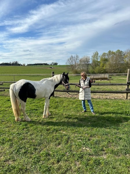 We are looking for a new owner for our dear Flint, who can provide him with the love, patience, and security to develop and reach his full potential. Flint is a very sweet and affectionate Tinker gelding who builds a strong bond with his person. He is very eager to learn and has great potential, but he needs a calm and patient hand to overcome his fears. Flint has a very sensitive nature and requires a person who respects and understands him. He is not a horse for beginners, but for someone with experience with anxious horses who is willing to invest time and patience, which is also reflected in the low price. We originally bought him for our riding school, but the many changing young people are simply too stressful for him. We are looking for a new home for Flint where he can receive the love and security he needs to develop into the wonderful Tinker he has inside him.