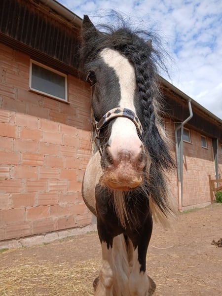 Remon, ein aufgeweckter Tinker, sucht ein liebevolles Zuhause für seinen Neustart. Derzeit ist Remon noch ein Hengst, wird aber vor Abgabe kastriert. Mit seinem rassetypischen Schnurbart ist er der Hingucker am Stall. Remon wurde in seinem bisherigen Leben nicht gearbeitet und ist daher roh. Er benötigt einen erfahrenen Reiter, der ihm mit Geduld alles zeigt.