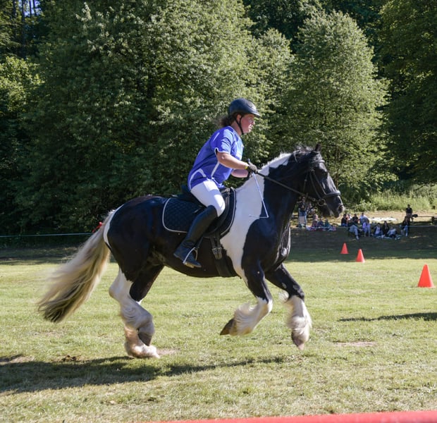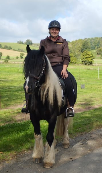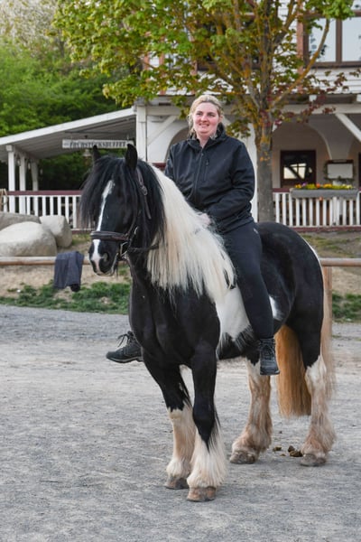 Zum Verkauf steht ein wunderschöner Tinker-Wallach aus dem Jahr 2018. Mit seiner hübschen Scheckung und dem auffälligen Langhaar ist er ein echter Blickfang! Im Umgang zeigt sich Juri sehr ruhig und verschmust und genießt sichtlich die Aufmerksamkeit, die ihm entgegengebracht wird. Außerdem kennt er den Hufschmied und lässt sich auch problemlos verladen. Er kennt Boxen- und Weidehaltung, wobei er sich im Herdenverband eher ranghoch einordnet. Selbstverständlich wurde er regelmäßig geimpft und entwurmt. Beim Reiten zeigt sich Juri sehr neugierig und aufgeschlossen. Dabei sind seine ausdrucksstarken Bewegungen, die sehr bequem zu sitzen sind, besonders hervorzuheben. Juri verfügt über ein Stockmaß von 1,47 m und deckt durch seinen stabilen Körperbau auch erwachsene Reiter gut ab. Juri kennt Ausritte zu zweit oder in der Gruppe und ist auch bei Tages- oder Wanderritten ein treuer und verlässlicher Partner. Außerdem hat er schon an einigen Schauen teilgenommen, wo er seine Zuverlässigkeit bei Schaubildern und Quadrillen unter Beweis stellte. Für Juri ist es dabei besonders wichtig, dass ihm sein Reiter/ seine Reiterin ein hohes Maß an Sicherheit vermittelt. Da er über einen eher stark ausgeprägten Charakter verfügt, benötigt er einen routinierten und erfahrenen Reiter, der ihm mit Gelassenheit und Durchsetzungsstärke entgegen tritt. Mit der richtigen Bezugsperson, klaren Routinen und Sicherheit findet man in Juri einen unheimlich treuen Begleiter. Juri wird nicht an Reitschulen oder als Anfängerpferd abgegeben, sondern gehört in geduldige und erfahrene Hände.