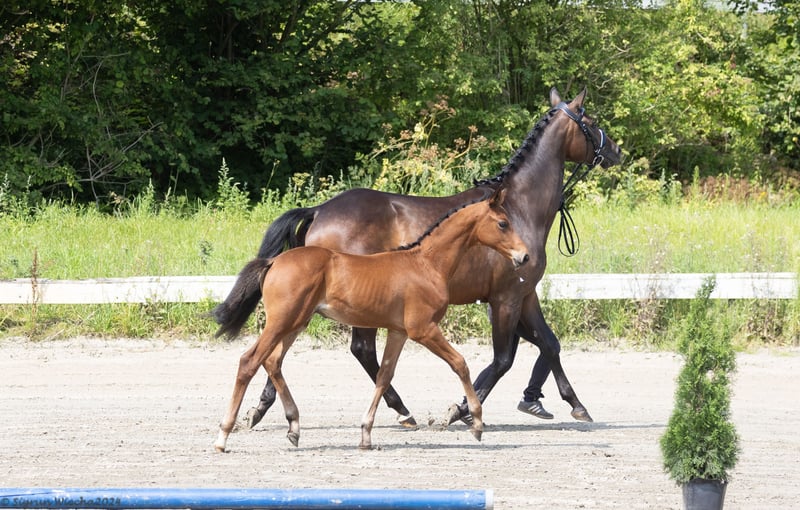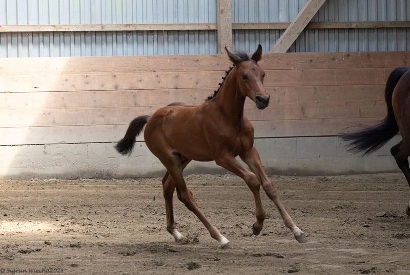 Met zijn atletische elegantie en verleidelijke charme presenteert HERBSTIMPULS zich als een echt baken van hoop voor een glansrijke carrière in de fokkerij en de sport ... De talenten voor zo'n carrière werden hem doorgegeven door zijn ouders, zijn voorouders en vooral zijn moederlijke familie. In zijn bouw, zijn belangrijke lichaamsdelen, zijn hoogbenigheid, maar vooral in de sensationele dynamiek van zijn bewegingsafloop is hij een ware ambassadeur van zijn vader, de internationaal bekende Grand Prix-held IMPERIO! De hoge adel, het klassieke typebeeld werd hem doorgegeven door zijn grootvader van moederszijde Ivanhoe; het onmiskenbare atletische karakter met vooruitzichten op een succesvolle showcarrière op volwassen leeftijd werd ook doorgegeven door zijn moederlijn van T14O3 Herbstblüte, die gedocumenteerd is in sportieve termen en ook verwijst naar een nauwe lijnfok met een dressuurvererver van wereldklasse, namelijk GRIBALDI, via Easy Game en All Inclusive. Herbstimpuls betovert met zijn hoge intelligentie, die ook tot uiting komt in zijn uitgesproken mensgerichtheid, evenals zijn voorbeeldige houding ten opzichte van alle taken, die hij met plezier en aandachtige bereidheid aanneemt. Vanzelfsprekend heeft hij het volste vertrouwen in zijn hoefsmid, is hij halstertrainer en geniet hij van het opgroeien in een natuurlijke kudde. Herbstimpuls zoekt ondersteunende handen voor zijn verdere opvoeding, zijn toekomst in de komende twee jaar ligt bij voorkeur in handen van een ervaren hengstenfokker.