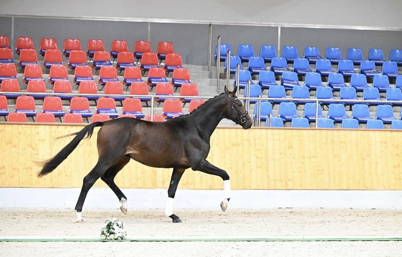 Duży, masywny ogier młodzieńczy Trakehner (2,5 roku) o imponującej prezencji i sportowych perspektywach. Obecnie ma około 173 cm w kłębie. Ten młody ogier zachwyca elastycznymi podstawowymi chody, pełnymi dynamizmu, rytmu i naturalnej równowagi. Już delikatnie lonżowany i chętnie skaczący przez przeszkody – zawsze czujny, uczciwy i z dużą orientacją. Matka Caitano, St.Pr.u.Pr.St. Chica od Herbstbach – Germanicus Rex, jest na etapie nadawania tytułu Elitarnej Klaczy Trakehner Verband. W 2014 roku zdobyła 1b nagrodę na krajowym pokazie klaczy skokowych oraz była rezerwową zwyciężczynią i najlepszą klaczą skokową w swojej kategorii. Jego ojciec Santo Scuro, już w wieku pięciu lat – jako najmłodszy ogier – został mianowany kandydatem do tytułu Elitarnego w Trakehner Verband. Wyróżnia się ujeżdżeniową wszechstronnością, mocnym charakterem, poprawną budową i doskonałym stanem zdrowia. W Stadl-Paura zdał 50-dniowy test z wyróżnieniem, uzyskując łącznie ocenę 8,48 jako najlepszy trzyletni ogier w swojej grupie. Szczególnie warto podkreślić jego oceny w ujeżdżeniu i ruchu (po 9,30), które podkreślają jego wyjątkowy charakter, wysoką chęć do pracy i predyspozycje sportowe. Na co dzień Caitano jest przyjazny, czuły i bardzo łatwy w obsłudze. Jest jasny w głowie, odważny i niezawodny, z doskonałym wychowaniem i zaufaniem do człowieka. Wychowany w zdrowych, odpowiednich warunkach, z codziennym wybiegiem i troskliwą opieką. Regularnie szczepiony, odrobaczany i prezentowany u kowala. Wyjątkowo sympatyczny młody ogier z doskonałymi predyspozycjami na przyszłość – prawdziwy partner na całe życie! Caitano z pewnością będzie kandydatem do wielkiego ringów. Dzięki swojej dużej galopadzie i dobrym skokom możemy go również bardzo dobrze wyobrazić w konkurencjach wszechstronnych. Przewiduje się, że Caitano zostanie wykastrowany na początku listopada. Zapraszamy na nasz profil na Instagramie Trakehnerhof_hegelerwald: https://www.instagram.com/trakehnerhof_hegelerwald?igsh=YXJtdHE4dndjMmU%3D&utm_source=qr i przekonaj się, jak wyglądał jego rozwój.