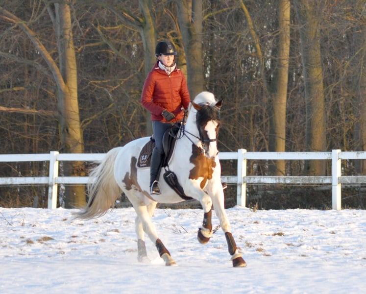 In 2013, Gabon was the first Arabian half-blooded animal ever licensed in NMS for Trakehner breeding. In the VZAP he became a premium stallion and reserve winner and now he holds the title of elite stallion. He is descended from the well-known Schecken Camaro and the Arab elite mare Galina ox, a purely Russian performance-tested multiple champion from the best Russian performance lines. He has now arrived in dressage in class S, currently victorious up to class M**. Gabon certainly inherits its beautiful type, a good foundation and its pleasant temperament. His offspring are clearly versatile, jump very well and gladly and are extremely rideable. Gabon now has 3 licensed sons, 2 of them premium stallions with HLP, his youngest licensed currently makes his HLP. In addition, he has award-winning daughters as well as various prize, winner and auction foals. Of the not a few existing TG we sell a few cans at € 600 per dose (6 sequins). This works very well, we ourselves have descendants of him every year. The TG is only sold against advance payment. You are welcome to visit Gabon and some of its descendants with us, please make an appointment.