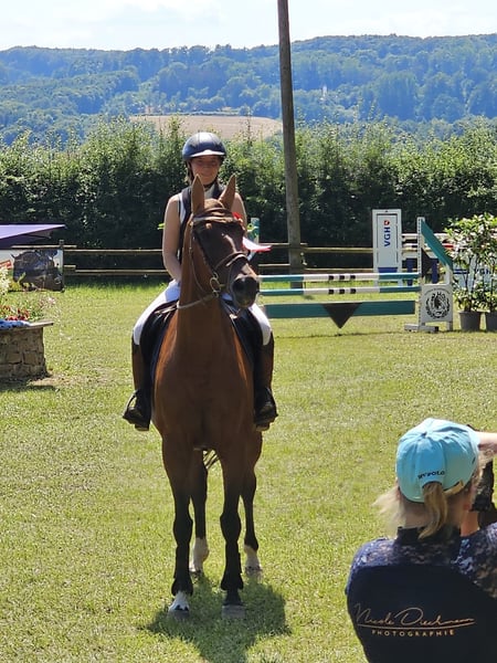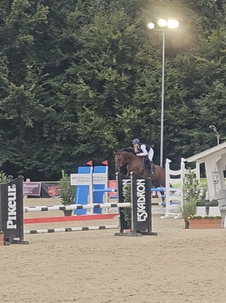 Ich verkaufe meine liebevolle 18 jährige Stute! Sie ist bis L springen platziert und A siegreich und ebenfalls in der Vielseitigkeit (Geländespringreiter) platziert!Sie hat Go zum Sprung,weshalb sie nicht für reine Anfänger geeignet ist! Sicher im e und a Bereich sollte man schon sein Sie liebt Wasser und geht alleine als auch mit der Gruppe ins Gelände! Hat man sie erst einmal auf seiner Seite kämpft sie für einen mit!! Sie ist regelmäßig geimpft und bei ihr wurden gerade frisch die Zähne gemacht! Sie ist artig beim Schmied und geht ohne Probleme auf den Anhänger! Sie hat in der Corona Zeit ein Fohlen bekommen!(2022) Das Fohlen bzw. jetzt 4 jährige ist ebenfalls zu verkaufen Verkaufe sie allerdings nicht als Zuchtstute,da sie kaum bis gar keine Milch hatte und wir das Fohlen per Hand aufziehen mussten! Die Geburt lief ansonsten reibungslos ab Ich könnte mir sie auch als reitbares Beistellpferd vorstellen Ein aktueller TÜV liegt nicht vor! Allerdings war der letzte TÜV nicht allzu gut,weshalb sie weit unter Wert zu verkaufen ist!! Aktuell nicht ganz im Training wegen Winterpause Sie war noch nie lahm bei mir!