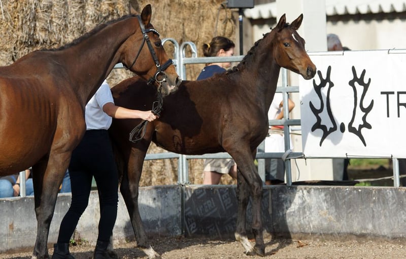 For sale is a stunning dark bay Trakehner mare, born in 2025. She impresses with her noble appearance and balanced temperament. As a versatile horse, she is ideally suited for eventing but is also perfectly capable in other disciplines. The mare boasts excellent bloodlines and promising potential. With her friendly character and robustness, she is suitable for both experienced riders and ambitious young talents. Foal evaluation 2025: Type 8.5 – Conformation 8.0 – Foundation 8.0 / Walk 8.0 – Trot 9.0 – Canter 7.5 / Overall impression 8.0 = 57.0 points She is raised appropriately in a herd on pasture throughout the year and is regularly dewormed and presented to the farrier. For further information or to arrange a viewing, please do not hesitate to contact us. We look forward to hearing from you! Additional promising young horses can be found at https://www.trakehnerhof-st-vitus.de/