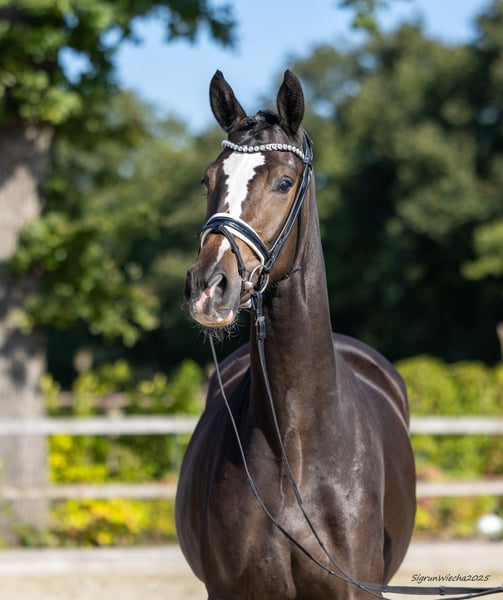 Die Vollschwester des dreijährigen Prämienhengstes und amtierenden Trakehner Reitpferdechampions Kanté (ex King Charles) tritt mit einer bezwingenden Aura auf und lässt sich in ihrem von Takt und Dynamik geprägten Bewegungsfluss als Hauptdarstellerin feiern. Die erstklassige Mutter weist sich als würdige Botschafterin ihrer als ZSE Siegerstute dekorierten Mutter und auch ihrer mit den Titeln einer Reitpferdechampionesse und ZSE-Siegerstute geschmückten Großmutter aus. Ganz eng verwandt mit der Grand Prix-Diva Kavalou (Peter John Weston). Die Stute wird anlässlich des Trakehner Hengstmarktes am 28.112025 bei einer Auktion versteigert, alle Informationen finden Sie unter: https://bid.trakehner.auction/auctions