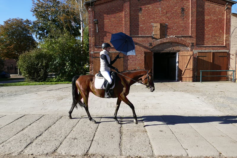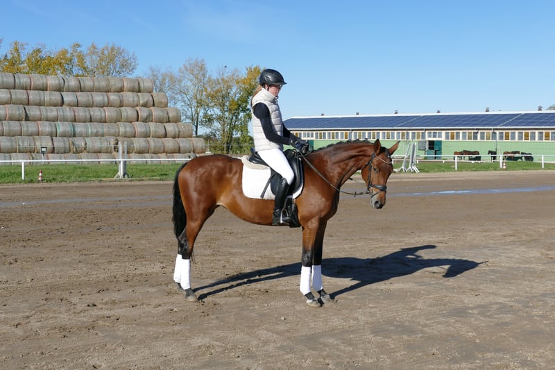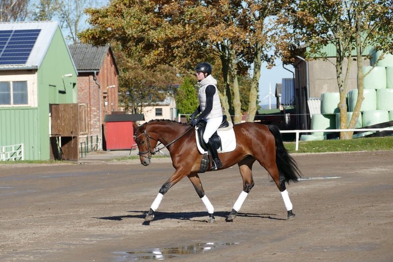 Geischa: - Charmante Trakehner Stute im kleineren Rahmen - mit drei sehr angenehm zu sitzenden Grundgangarten - Qualität am Sprung - Kopfklare Stute mit schönem Seitenbild - Leichtrittiges Familienreitpferd mit sportlicher Perspektive