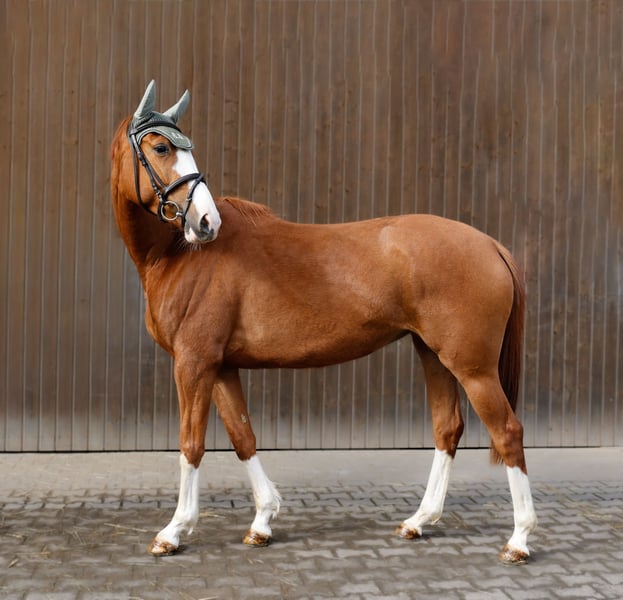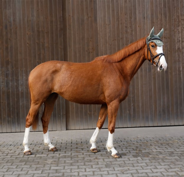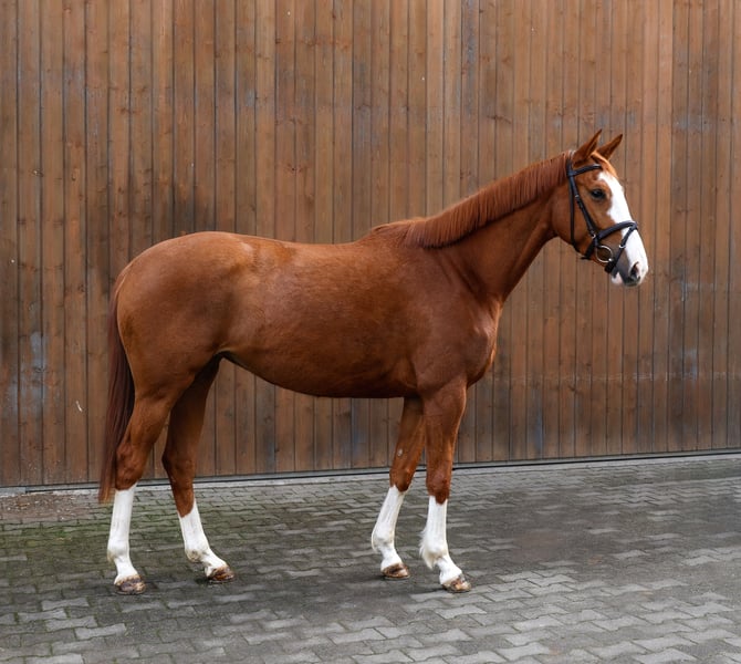The bloodlines, strong character, and intelligence of this 4-year-old mare Enni make her a versatile and promising prospect. She has been being gently and appropriately trained since December 2025 and demonstrates a very eager-to-learn and attentive attitude. Under saddle, Enni has already completed her first jumps and shows great talent, ability, and a very positive attitude towards jumping. She has also been introduced to cross-country terrain. Her canter, in particular, promises a lot for the future – she will develop into a real meter-eater later on. Enni is a clever mare with a strong personality, yet she is very eager to learn and affectionate in her interactions. She is thoughtful and wants to please her handler. She also impressed at the Marbach show jumping competition, receiving a 8.0 for her jumping style. In daily handling, Enni is straightforward and agreeable: • easy to manage • knows how to load • behaves well at the blacksmith Since Enni is still young and in training, she is not suitable for beginners. We see her best with an amateur rider with experience in young horses who enjoys further developing a talented horse. We wish her a loving home where she will be appreciated not only as a sporthorse but also as a family member. To prevent riding tourism, we charge a fee of €50 for a trial ride, which will be deducted from the purchase price if she is bought. Serious inquiries are welcome, and we look forward to hearing from you.