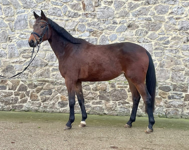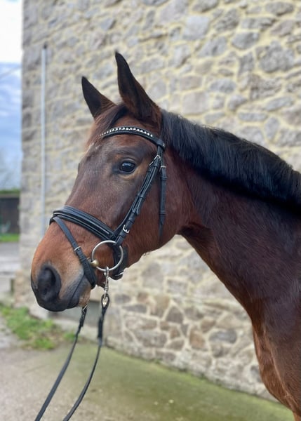 Daily is a friendly, people-oriented young mare who I bred myself and who grew up in a herd. She is uncomplicated and has strong nerves and has not caused any problems when breaking her in. Her sire Sturmpfeil is a two-time Vice Champion at the Bundeschampionat Eventing and her dam's sire Goldschmidt is an elite stallion of the Trakehner Verband. She is still growing and will gain a few more centimeters in height. The basic gaits are good and even, with the walk being particularly noteworthy. I would like to see Daily receive further supportive training and I can well imagine that she would also be suitable as a family horse due to her good interior.