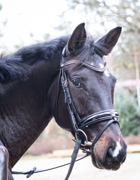 Urania was backed as a four-year-old and then given time to mature. She has been ridden consistently for the past quarter of a year and is very cooperative, making daily progress. In addition to dressage work, she is also ridden in the field and has already begun jumping over colorful poles and small cross-country obstacles. Her sire, the elite stallion candidate Ganderas, was already placed in S-Dressage at the age of seven. The YouTube video shows him competing in an S-Dressage test. Her dam was awarded premium mare status by the Trakehner Verband and was the winner of her mare performance test. Her pedigree also includes the renowned S-Dressage stallions E. H. Hofrat on the sire’s side and E. H. Easy Game on the dam’s side, both tracing back twice to the legendary E. H. Gribaldi. Urania is an absolute sweetheart in handling and shows no bad habits. She is familiar with pasture, open stall, and box, and has been lunged on the lunge line. In summer, she shows minor signs of eczema, which are perfectly managed with a fly sheet during turnout. We are looking for a family with experience in young horse training for our very people-oriented Urania. Due to her age and training level, she is definitely not suitable for beginners, although she is incredibly sweet. She is being sold on behalf of the breeder. X-ray images are available and can be sent upon request.