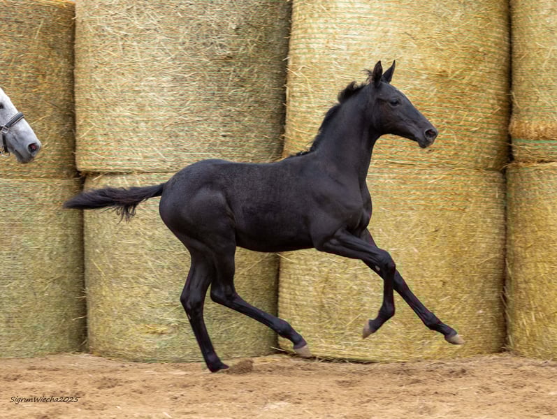 Dalton Vra AA hat mit seinem ersten Jahrgang bei uns wahrhaftig Akzente gesetzt! Er verbesserte jede einzelne Beurteilungsposition, und die Gesamtpunktzahl um ganze 3 Punkte! Ein leistungsgeprüfter Anglo-Araber, der in Dänemark sowohl in Dressur wie auch Springen Erfolge bis zur Kl. M vorweisen kann. Vater von Dalton Vra AA ist der Shagya-Araber Dartan. Diese Hengstlinie geht zurück auf den Araberhengst DAHOMAN, geboren 1846. Die Dahoman-Linie zeichnet sich durch einen starken Rahmen, hervorragende Knochen, Zähigkeit und Ausdauer aus. Seine Mutter Donna Vra AA ist eine Tochter des im Springsport hocherfolgreiche DON-CASTER AA von DORPAS AA, intl. Springen bis Klasse S** mit Dirk Schröder (u.a. 1.Platz CSI Neustadt/Dosse). DON-CASTER AA ist auch Vater von JUMEAUX RH AA (Springen in VS bis Kl. M2*) und ein mütterlicher Halbbruder zu BONAPARTE N AA, NABUCCO AA. Seine Grossmutter Piroutte Vra AA stammt von PRIMUS AA, ein Sohn des berühmten MATCHO AA (NK-LGS 578.029,-- €), dessen Nachkommen vielmals in Dressuren hocherfolgreich waren. Er ist Vater von 37 S-Dressurpferde, 8 S-Springpferde, 1 S-VS-Pferd und 7 S-Fahrpferden, hauptsächlich Hannoveraner. Prämienstutfohlen Bella Athletica (54.5 Punkte) ist ein bewegungsstarkes Stutfohlen aus einer sportlichen, fruchtbaren Stutenfamilie. Garant für Leistung und züchterisch hochinteressant aufgrund eines Pedigrees, das zur Erhaltung der benötigten Vielfalt innerhalb der genetisch immer enger werdenden Population des Trakehner Pferdes beitragen kann. Mutter Bella Luna, eine harmonische Halbblutstute verkörpert die einzige eingetragene Tochter des Wörtersee xx – Bruders Well Done xx. Mit einem GAG von 91.5 kg auf der Rennbahn hart geprüft, verzeichnet er über 43 Starts und 12 Siege mit einer Gesamtgewinnsumme von 85.000 Euro. Die leistungsgeprüfte Grossmutter (SLP Endnote 7,92) Bella Chocolotta v. Suchard ist Halbschwester zu vier - in verschiedenenen Zuchtverbänden - gekörten Hengsten. Darunter der Halbblüter Pampero v. Panchero II AA, beeindruckernder Sieger des 70 Tage Tests in Marbach und dem beim ZSAA gekörten B.B. King v. Best Before Midnight, der einen sehr guten 30 Tage Test absolviert hat und im Turniersport in VS-Prüfungen erfolgreich war. Ihre Halbschwester Belle Petitesse ist im Leistungsstutbuch des ZSAA eingetragen. Bella Chocolotta lieferte u.a. die Pr.A. Bellezigane (NMS 21/51) aus dem ersten Jahrgang des Weltmeisters der 7j. Vielseitigkeitspferde 2020, Eliteanwärter Sweetwaters Ziethen TSF und deren ebenfalls als Prämienanwärterin eingetragene ein Jahr jüngere Vollschwester Bellevue. Suchard als Vater der Grossmutter, selbst in Springen bis Klasse S erfolgreich, ist Vater der gekörten Hengste Ballisto Z, Budweisser Classic, Becket und den Vollbrüder Lossow und Lessen (GB). Die Liste seiner sporterfolgreichen Nachkommen ist lang. Er lieferte in der Trakehner, Oldenburger und Rheinischen Zucht etliche Sportler für Vielseitigkeit und Springen. Einer seiner bekanntesten Nachkommen, neben den sporterfolgreichen Hengsten Ballisto Z und Budweiser Classic, ist Finch Hatton TSF. Suchard findet man ebenfalls als Vater der E.St. Blanchette, Mutter des Blancor. Über Bella Marjell im fallenden Stamm, ebenfalls geführt im Leistungsstutbuch des ZSAA (Abt. D 10/10) führt Bella Athletica das Blut des in Mächtigkeitsspringen siegreichen Machandel, der später in Polen stationiert war. Über die Väter Bartholdy, Seeadler v. Habicht und den harten Vollblüter Nemrod xx im fallenden Stutenstamm findet man geballte Leistung auf der Basis eines polnischen Stutenstammes. Die vierte Mutter Bella Babette v. Bartholdy ist eine Vollschwester des bis Kl. M erfolgreichen Vielseitigkeitspferdes Ben Bartholdy. Stutenfamilie/mare line: O468A1 Barkarola Bella Athletica wird auf der Sweetwater Stud Autumn Sale 2025 angeboten. Die Auktion läuft vom 12.11. bis 19.11.2025. Bid Up startet um 19:00 Uhr MEZ. Registrieren und mitbieten können Sie sich unter https://auction.sweetwater-stud.com/auctions