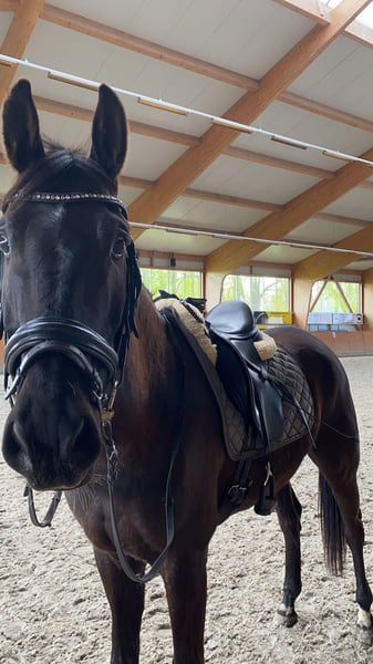 Verkaufe eleganten Trakehner Wallach – ideal für ambitionierte Reiter! Dieser beeindruckende Schwarzbraune, geborene 2016, überzeugt durch sein edles Erscheinungsbild und sein vielseitiges Springtalent. Mit einem Stockmaß von 168 cm bietet er die perfekte Größe für anspruchsvolle Reiter, die Wert auf Qualität und Leistung legen. Der gut ausgebildete Wallach bringt eine solide Springtechnik mit. Seine freundliche und lernbereite Art macht ihn zu einem zuverlässigen Partner im Training und im Turniersport. Bei Interesse stehe ich gerne für weitere Informationen und eine Besichtigung zur Verfügung. Kontaktieren Sie mich, um mehr über dieses schicke Pferd zu erfahren!