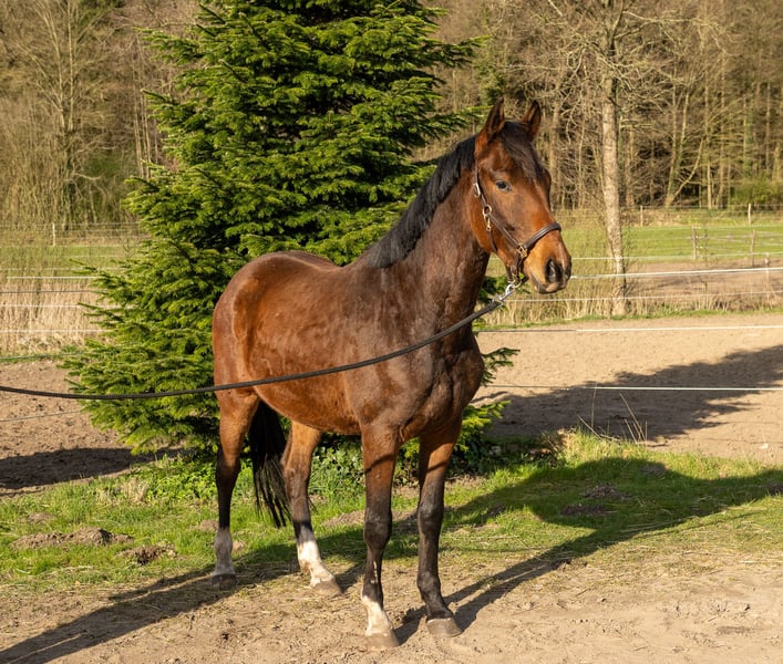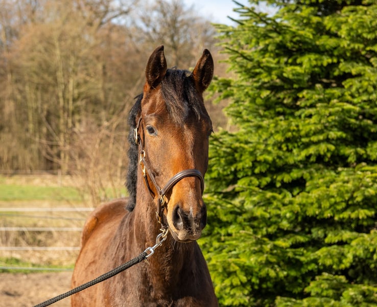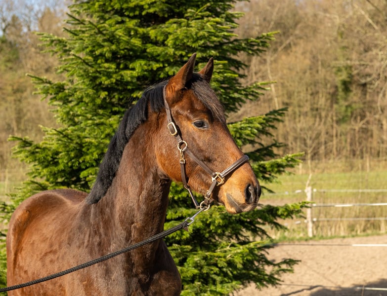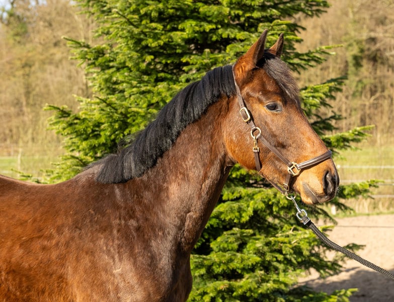 Dieser dreijährige Wallach sucht seinen Menschen und Ausbilder. Er wurde sorgsam aufgezogen, regelmäßig entwurmt, kennt Schmied, anbinden, führen und putzen und soll nun in fördernde Hände abgegeben werden. Er ist kompakt und geschlossen, bewegt sich in allen drei Grundgangarten gut mit Höhepunkten im Trab und in der Hinterhandmechanik. Stets interessiert an neuen Aufgaben hat er sich in der gesamten Aufzucht als unkompliziert und lernwillig gezeigt, so dass der nächste Schritt in die Ausbildung zum Reitpferd sicher viel Freude bereiten wird und er zu einem tollen Sport- oder Freizeitpartner heranwächst. Der Wallach wurde im Frühjahr 2022 geröntgt und hat keine Auffälligkeiten.