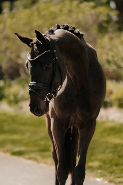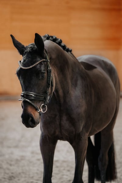 SILENCE, eine auffallend typvoller Wallach für den Dressursport in edler Aufmachung. Das schöne Nachwuchstalent mit vielversprechender Perspektive für das große Viereck verfügt über ein grossrahmiges, ausdrucksstarkes Gangwerk, das es mit Sachverstand und der gebotenen Rücksicht auf Alter und körperliche Entwicklung des Pferdes schonend zu entwickeln gilt. Er verfügt über ein ausgeglichenes, freundliches, sowohl Seinen Artgenossen, als auch dem Menschen zugewandtes, aufgeschlossenes Wesen. Um eine reelle Einschätzung über die Qualität des Pferdes zu bekommen, möchten wir Ihnen darum empfehlen, SILENCE persönlich kennenzulernen . Er ist in 61130 Nidderau stationiert. ZUM AUSBILDUNGSSTAND: SILENCE wurde vor kurzem anlongiert und nun schonend an die Arbeit unter dem Sattel herangeführt. Entsprechend seinem Ausbildungs- und Entwicklungsstand liegt der Schwerpunkt aktuell auf Vertrauensbildung und schonender Aufbau an der Longe. Er zeigte von Beginn an eine außergewöhnliche Arbeitseinstellung und ist an der Longe schon sehr sensibel an den Hilfen. Hierbei liegt unser Fokus auf der nachhaltigen, altersgerechten und schonenden Ausbildung zum gesunden und leistungsfähigen Sportpartner für den gehobenen Dressursport, nicht auf Jungpferdechampionaten. Die Ausbildung des jungen Wallachs erfolgt individuell, entwicklungsorientiert und altersgerecht im Sinne der klassischen Skala der Ausbildung. Gerne stehen wir Ihnen unter der Mobilnummer 0049 151 418 90 516 für Fragen zur Entwicklung des Pferdes sowie einer persönlichen Terminvereinbarung zur Verfügung. TÜV- UNTERSUCHUNG Die am 28.04.25 im Rahmen dieser Untersuchung angefertigten Röntgenbilder sind inklusive Hals und Rückenaufnahmen. Die Röntgenbilder sind ohne Befund! Diese umfassende röntgenologische Untersuchung durchläuft jedes unserer Jungpferde bevor wir mit dem ersten Training beginnen, da ein gesunder Bewegungsapparat sowie die erforderliche körperliche und mentale Reife gemäß unserem Anspruch Grundvoraussetzung für die Ausbildung unter dem Sattel sind. RÖNTGENBILDER, UND VIDEOS MIT IMPRESSIONEN AUS DEM TRAINING VERSENDEN WIR GERNE AUF ANFRAGE: WIE WIR ARBEITEN Unsere Jungpferde wachsen in kleinen Gruppen ganzjährig im Offenstall auf. und genießen eine fürsorgliche, entwicklungsorientierte Aufzucht. Auf den jeweils rund 5.000 m² großen Winterausläufen können sich die Jungpferdegruppen auch im Winter durch alle Gangarten unbegrenzt frei bewegen. Der direkte Anschluss an die weitläufigen Sommerweiden bietet optimale Bedingungen für die körperliche Entwicklung. Das Anbinden und Putzen gehört ebenso zur täglichen Routine, wie die individuelle Zufütterung und bedarfsorientierte, saisonale Supplementierung, sowie das umfassende Monitoring der allgemeinen körperlichen Entwicklung und des Bewegungsapparates. Je nach Geschlecht 3- 4-jährig gut entwickelt, robust, sozialisiert und charakterlich ausgeglichen, sind unsere jungen Nachwuchstalente umfassend auf Ihren weiteren Lebensweg vorbereitet. Individuell auf das jeweilige Pferd und seinen Entwicklungsstatus angepasst, erfolgen nach dem ersten Aufstallen sowie TÜV- Untersuchung, schonend und spielerisch die ersten Schritte zur Vorbereitung auf die Arbeit unter dem Reiter.