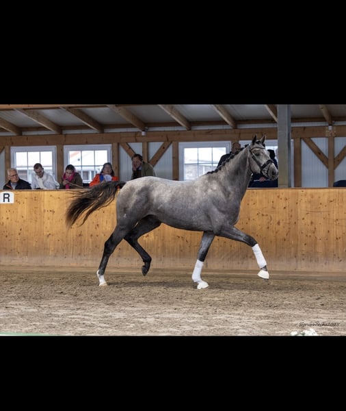 "Manitou" is an expressive, charming gelding by "Kind of Magic" out of a mare by "Connery." He is currently being gently backed at our Panker stud farm and is enjoying his early training in the young horse school. He consistently shows himself to be attentive and eager to learn. The young gentleman is very committed and provides the rider with a lovely riding sensation. He is pleasantly soft to sit and, during his first rounds under saddle, moves evenly in outline. The gelding impresses with his stylish appearance and captivates with a harmonious build. Last year, "Manitou" was presented for pre-selection, where the photos for this ad were also taken. After the pre-selection, he enjoyed his life as a pasture horse and has recently been gently backed again. "Manitou" has good X-ray results. If you're interested, please contact us to get to know "Manitou" here at Panker stud farm.