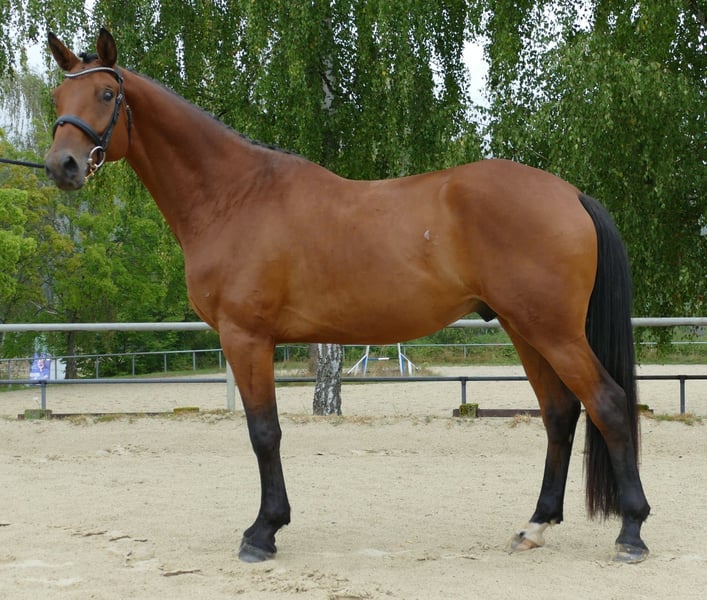 Dieser tolle Bewegungsstarke Schmusebär sucht sein Reiter fürs Leben. Wir haben ihn selbst gezogen und er ist auf tollen Weiden groß geworden. Nun ist er Grade auf dem Weg ein Reitpferd zu werden. Da zeigt er sich mit hoher Lernbereitschaft und Ausdauer. Seine ersten Freispringreihen macht er Mutig und motiviert das ein super Vielseitigkeitspferd erwarten lässt. Mit seiner Größe von ca. 1,64m wird er in einem schönen Rahmen bleiben. Der Preis steigt mit weiterer Ausbildung. Videos vorhanden
