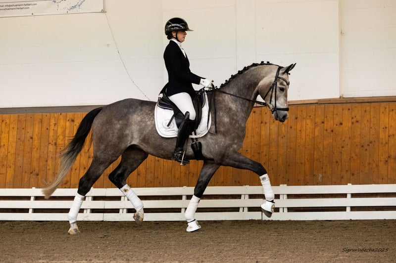 Ein Star dieser Kollektion, denn Kavos wurde mit glänzenden Talenten für eine vom Erfolg verwöhnte Karriere im Großen Viereck beschenkt und vermittelt eine Symbiose von hoher Rittigkeit, vorbildlicher Arbeitseinstellung und einem dynamischen, von Kraft und Takt getragenen Bewegungspotential. Siegreich und hochplatziert in Reitpferdeprüfungen und Dressurpferdeprüfungen Kl. A. Aus einem profilierten Leistungsstamm, dem die Verbindung der Weltklassedressurpferde Imperio und Solero TSF ein sportlich erlesenes Gesicht verleihen. Bruder des S-Dressurpferdes Killarney und eng verwandt mit dem Grand Prix-Star Kaiser Wilhelm TSF. Weitere Informationen finden Sie unter: https://bid.trakehner.auction/auctions Wiry, athletic, and committed describe the attributes of this daughter of advanced level show jumper Tempelhof, and her sport ambitions run from eventing to show jumping. Coming from a dedicated sport horse breeder and a top-class sport horse producer, she was given the right skills during her training under saddle. From a top performance dam line, where the combination of Nations Cup hero Waitaki with successful Grand Prix stallion Axis TSF and advanced level show jumper Couleur-Fürst conveys great sport horse potential. Further information can be found under: https://bid.trakehner.auction/auctions