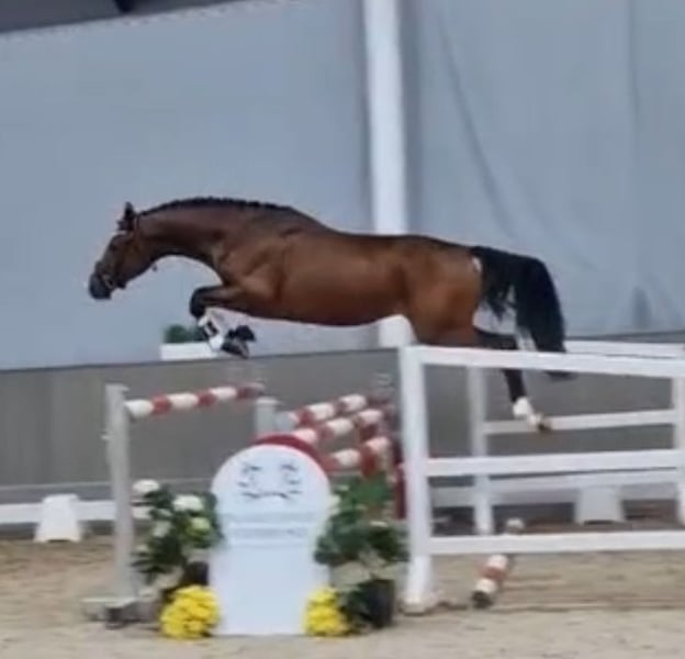 Dieser typvolle vierjährige Wallach ist aufgrund seiner interessanten Springblutabstammung kombiniert mit einem einmaligen Charakter und viel Ausdruck eine absolute Rarität. Mit drei guten Grundgangarten ausgestattet, wobei Schritt und Galopp besonders hervorzuheben sind, beweist er sein einzigartiges Können vor allem am Sprung. Dazu ist er leichtrittig und sehr klar im Kopf. Turnierplatzierungen in Springprüfungen der A* liegen vor. Ein Blick ins Pedigree verrät geballtes Springblut von Vater- und Mutterseite. Der Vater Stubbendorff aus der leistungsstarken Schwindlerin-Familie hatte sportliche Erfolge mit über 40 Siegen und Platzierungen in Springprüfungen bis zur Klasse S. Die Mutter Longhena vom Waitaki Sohn Der Dürer, welcher unter anderem mit Michael Jung im Sattel international in schweren Parcours erfolgreich war, weist bestes Zuchtblut vom Gestüt Vogelsangshof auf. Mütterlicherseits ist Longhena über den Vogelsangshofer Erfolgsstamm der Lottka Familie gezogen, zu der auch die Vielseitigkeitsolympioniken Lester Piggott und Longchamps gehören. Diese besondere Genetik kombiniert mit dem einzigartigen Charakter und seiner Leistungsbereitschaft macht diesen schicken Wallach zu einem großartigen Nachwuchspferd mit allerhöchstem Springpotential.
