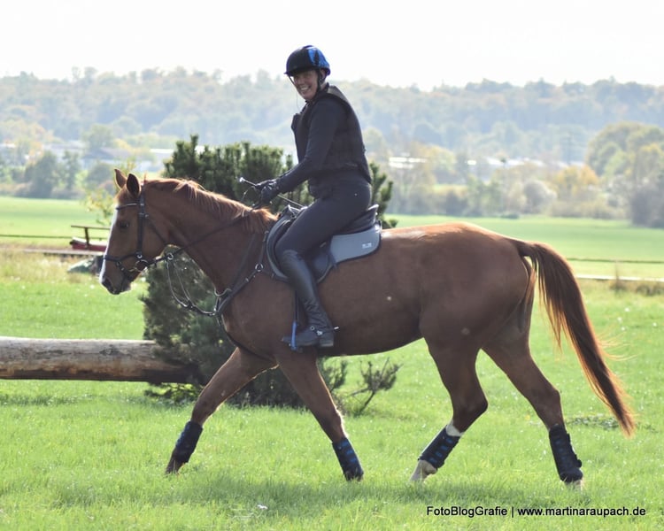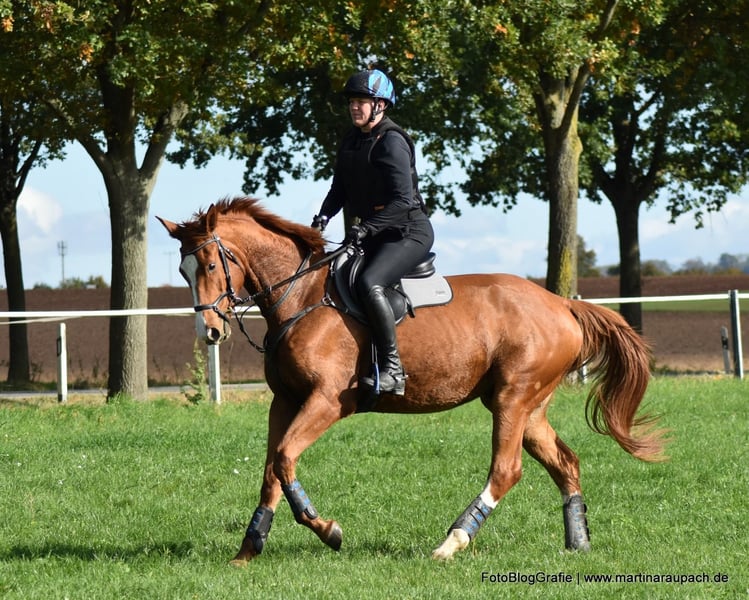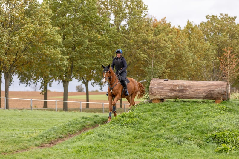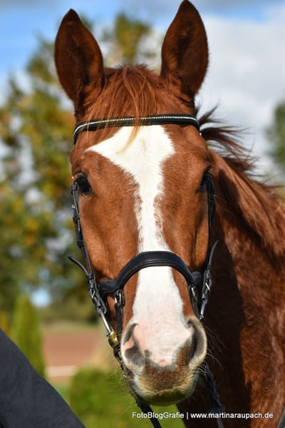 Bel Viaggio (Italian for "beautiful journey") is affectionately nicknamed TUI and is, above all other qualities, a super friendly and people-oriented horse. When a person enters the paddock, it doesn't take long for TUI to come over for some affection. So, attention: the future carrot giver should enjoy this! Due to his XXL size, we have started his training very slowly and gently. Short "work sessions," trail rides, and now in late summer, the first small jumps under the rider. He has also already overcome a few solid jumps (small logs). TUI is always willing, has a great temperament, and brings joy to training. He tends to be on the calmer side; in the video, you can see him "startle" when a car drives by above the riding arena – it doesn't really bother him. He still wants to grow into his body and will surely gain more strength before he fully taps into all his potential. He currently lives in a loose housing system with mixed group management and is barefoot. A setup with plenty of turnout is also desired for the future. His maternal half-brother BELUN by Nathan de la Tour AA was the best show jumping stallion at the licensing and is the current show jumping champion of the 5-year-old Trakehners. So, talent runs in TUI's blood, as his father was also the best show jumping stallion at the licensing. We are happy to send more photos and videos of TUI upon request via WhatsApp.