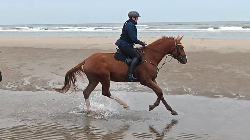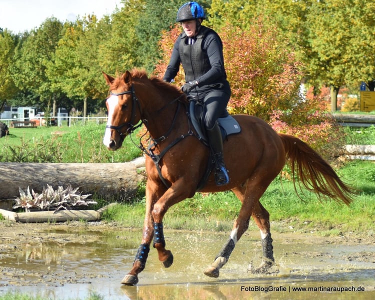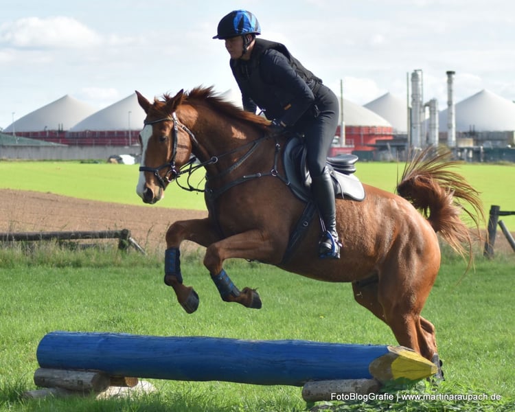 Bel Viaggio (ital. schöne Reise) hört bei uns auf den Spitzname TUI und ist vor allen anderen Qualitäten ein super freundliches und dem Menschen zugewandtes Pferd. Kommt ein Mensch aufs Paddock, dauert es nicht lange und TUI kommt schmusen. Also Achtung: Der oder die künftige Möhrchengeber/in sollte das mögen! Aufgrund seines XXL-Formates haben wir sehr langsam und schonend mit der Ausbildung begonnen. Kurze "Arbeitseinheiten", Ausritte ins Gelände und im Spätsommer auch die ersten kleinen Sprünge unter dem Reiter. TUI ist immer willig, hat ein super Nervenkostüm und macht Freude in der Ausbildung. Von der Tendenz gehört er eher zur ruhigeren Sorte und er will sicher noch weiter in seinen Körper wachsen / an Kraft hinzugewinnen, bevor er aus all seinen Möglichkeiten schöpfen wird. Wir haben ihn Anfang Oktober mit an die See genommen, leider war das Wetter sehr, sehr stürmisch, so dass das geplante Fotoshooting ausfallen musste. Aber ein paar Handy-Bilder gibt es dennoch. TUI ging brav ins Wasser, auch trab und Galopp funktionierte schon. Obwohl erst 4, ging er mutig vorweg. Wir zeigten ihn im Rahmen der Trakehner Sichtungsinitiative VS in Altenstadt und er machte einen sehr guten Job! Jeden Sprung beim ersten Anlauf, auch den Graben sprang er sofort. Andreas Ostholt empfahl so weiter zu machen. Für die Winterarbeit wurde frisches galoppieren im Gelände auf den Plan geschrieben. TUI wohnt aktuell in einem Laufstall in gemischter Gruppenhaltung und läuft barhuf. Eine Haltung mit viel Auslauf wird auch für die Zukunft gewünscht. Sein mütterlicher Halbbruder BELUN von Nathan de la Tour AA war bester Springhengst der Körung und ist aktueller Springchampion der 5 jährigen Trakehner. Das Talent liegt Tui also in der Wiege, denn auch sein Vater war ja bester Springhengst der Körung. Mehr Fotos und Videos von TUI senden wir gerne auf Anfrage per WhatsApp.