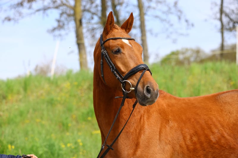Still very youthful in appearance, which is of course due to the fact that he is only 3 years old, Maientanz already has a certain routine under saddle. Brought in about a month ago, he completes the tasks assigned to him in walk, trot and canter with an overview and a very decent nature and you can see that contact and balance will very quickly become more pronounced with further, classical training. Curious but uncomplicated in the field too, so that a future eventing career can also be considered. With E.A. Blanc Pain and Uckermäcker, two solid riding horse makers in the first generations who promise the desired ease of use.