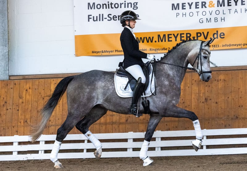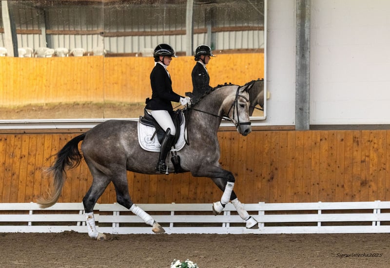 A star of this collection, Kavos has been endowed with brilliant talents for a successful career in the Olympic disciplines. He embodies a harmonious blend of high rideability, exemplary work ethic, and a dynamic movement potential driven by power and rhythm. He has achieved victory and high placements in young horse classes and dressage competitions at Level A. Coming from a distinguished performance lineage, he carries the sportily refined bloodlines of the world-class dressage horses Imperio and Solero TSF. He is a half-brother to the S-Dressage horse Killarney and closely related to the Grand Prix star Kaiser Wilhelm TSF. Further information can be found at: https://bid.trakehner.auction/auctions