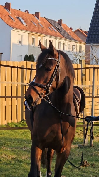 Zum Verkauf steht unser brauner Wallach Rudi L, direkt vom Züchter. Ein sehr typvoller, eleganter Youngster mit guten Grundgangarten und bester Einstellung zur Arbeit. Rudi ist sechs Jahre alt und befindet sich noch am Anfang seiner reiterlichen Laufbahn. Aufgrund einer Verletzung meinerseits ist er erst seit etwa einem halben Jahr unter dem Sattel. Er arbeitet sehr gerne mit, ist aufmerksam und überzeugt durch seine schnelle Auffassungsgabe. Aktuell haben wir mit Stangenarbeit begonnen, auch erste kleine Sprünge meistert er souverän und mit viel Übersicht. Aufgrund seines momentanen Ausbildungsstandes ist er derzeit kein Anfängerpferd, bringt jedoch beste Voraussetzungen für eine weitere Förderung im Dressur- wie auch im Springbereich mit. Durch sein sehr gutmütiges, Wesen und seine Menschenbezogenheit kann ich ihn mir – bei entsprechender weiterer Ausbildung – ebenso gut im Freizeitbereich oder perspektivisch als Familienpferd vorstellen. Er ist schmiede- und verladefromm und kennt die gängigen Abläufe im Stall. Es gibt Röntgenbilder aus 06/2025 die alle ohne Befund sind. Ein schicker Nachwuchswallach mit viel Potenzial, der nun seinen weiteren Weg bei einem fördernden Reiter gehen möchte. Bei ernsthaftem Interesse freuen wir uns über eine Kontaktaufnahme. Anfragen gern per WhatsApp oder ab 17:00 Uhr telefonisch.