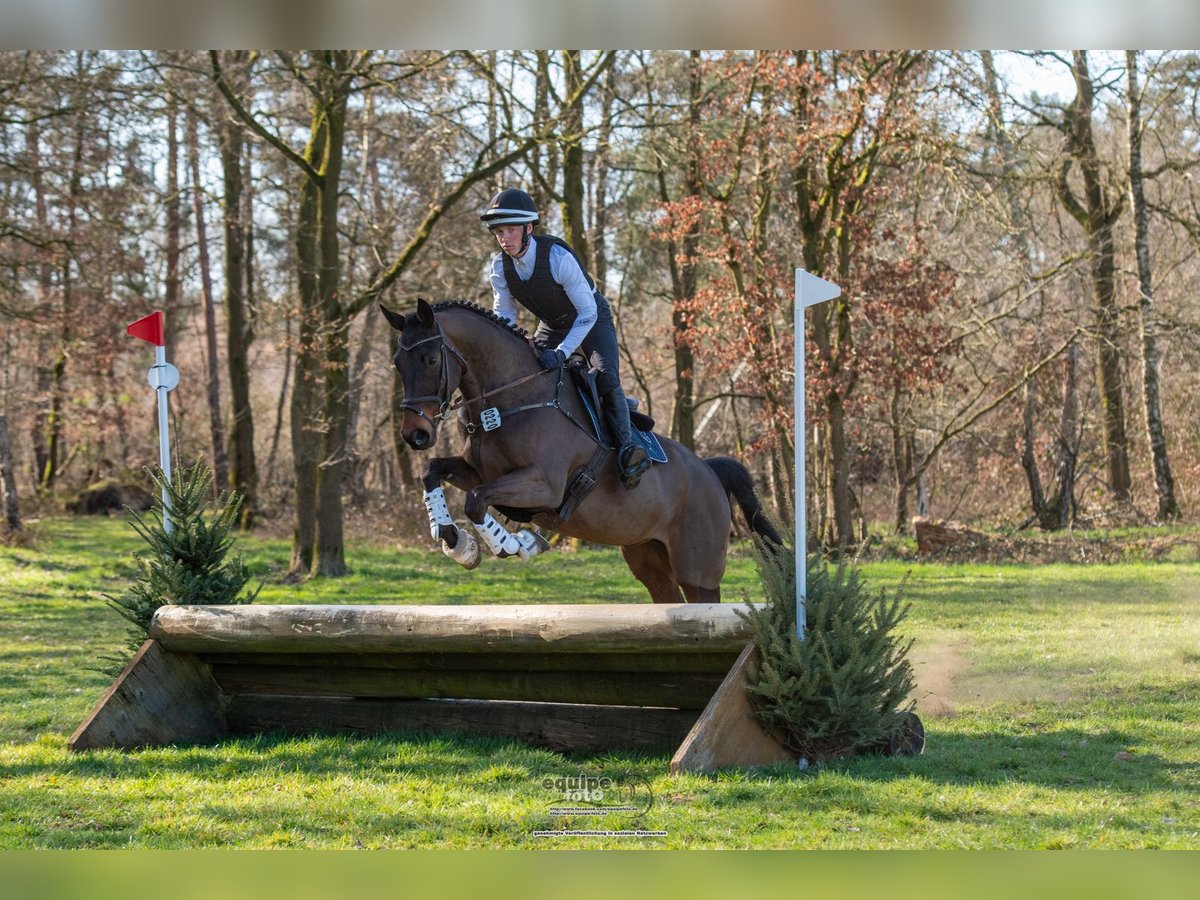 Dieser sehr interessante Halbblüter (fast 80% Vollblut-Anteile) hat noch eine große Entwicklung vor sich. Der Reiter sollte Springerfahrung mitbringen und wird mit diesem Youngster viel Freude haben, wenn er ihn auf seiner Seite hat! Der Wallach ist schonend ausgebildet und hat letztes Jahr tolle Ergebnisse in Geländepferdeprüfungen geliefert. Nach der Winterpause ist er seit Februar wieder in Ausbildung. Der Vater King Size AA ist einer der profiliertesten und bewährtesten Vererber in der Anglo-Araberzucht Frankreichs. In jungen Jahren ist dieser Dressur und Vielseitigkeit gegangen, später nur noch Springen. Dort war er bis CSI3* erfolgreich und hat einen Springindex (ISO) von 160. Cestuy la de L'Esques AA v. King Size AA war mit Stephan Dubsky in der Derby-Qual.ifikation in Hickstead (GBR) über 1,60m platziert. KING SIZE AA ist Vater vieler erfolgreicher Spring- und Vielseitigkeitspferde. Die Mutter stammt vom bekannten Trakehner Halbblüter CARUSO NERO aus Russland. Dieser ist für seine Vererbungskraft im Springen bekannt. Standort ist Warendorf