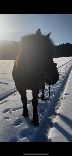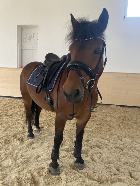 Schweren Herzens verkaufe ich meinen tschechischen Sportpony-Wallach Be my Bony. Bony ist 10 Jahre alt und lebt derzeit in einer gemischten Herde mit vier Stuten im Offenstall. In der Dressur zeigt er sich stets motiviert und lernbereit. Er benötigt jedoch einen erfahrenen Reiter, der ihm die nötige Sicherheit gibt. Bony wurde bereits auf Turnieren vorgestellt und kennt somit auch fremde Umgebungen. Im Gelände ist er sowohl in der Gruppe als auch alleine zuverlässig und brav. Im Umgang ist Bony höflich und zeigt keine Unarten. Aufgrund früherer schlechter Erfahrungen mit Männern und Mistgabeln reagiert er zu Beginn manchmal zurückhaltend, weshalb er neue Menschen und Situationen anfangs kritisch beurteilt. Mit Ruhe und Konsequenz fasst er jedoch schnell Vertrauen. Hängerfahren und der Schmied sind für ihn kein Problem. Momentan läuft er barhuf. Bony kann jederzeit nach Absprache besichtigt werden. Platz vor Preis!