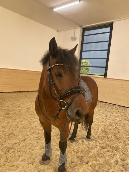 With a heavy heart, I am selling my Czech sport pony gelding, Be my Bony. Bony is 10 years old and currently lives in a mixed herd with four mares in an open stable. He consistently shows motivation and willingness to learn in dressage. However, he requires an experienced rider who can provide him with the necessary confidence from above. Bony has already competed in shows and is familiar with unfamiliar environments. In the outdoor, he is reliable and well-behaved both in a group and alone. Due to a fully healed suspensory ligament injury from four years ago, I recommend avoiding jumping. Aside from that, he has always been healthy with no lameness issues. In handling, Bony is polite and shows no bad manners. Due to past negative experiences with men and pitchforks, he may initially be somewhat reserved and cautious when meeting new people and situations. With patience and consistency, he quickly gains trust. Loading onto the trailer and the farrier are no problem for him. Currently, he is barefoot. Bony can be viewed at any time by arrangement. Priority goes to the right home!