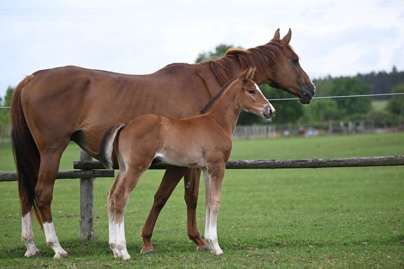 Wir bieten zum Verkauf Petarda, eine 10-jährige Stute, geboren 2015, von Lord Weingard (von Lordanos) und aus einer Thoroughbred-Stute mit starkem sportlichem Hintergrund. Petarda hat erfolgreich im Springreiten bis 130 cm konkurriert und dabei ausgezeichnete Technik, Rittigkeit und Willen gezeigt. Sie hat eine korrekte Konformation, elastische Bewegungen und ein einfaches Temperament, was sie zu einem Vergnügen macht, sowohl am Boden als auch unter dem Sattel zu arbeiten. Petarda stammt aus einer hochgeschätzten Mutterlinie, die sportliche Leistung und Thoroughbred-Raffinesse vereint. Ihre Mutter trat im Vielseitigkeitsreiten auf CIC*-Niveau an und zeigte die Athletik, den Mut und die Ausdauer, die in dieser Disziplin erwartet werden. Besonders attraktiv wird dieses Pedigree durch die Vollschwester ihrer Mutter – Petardas Tante – die erfolgreich auf CIC**-Niveau konkurrierte und damit die Konsistenz und Qualität der Leistung innerhalb dieser mütterlichen Linie bestätigt. Bedeutend ist, dass ihr Thoroughbred-Hintergrund den legendären Heraldik xx umfasst, einen der einflussreichsten Thoroughbred-Hengste in der modernen Sportpferdezucht. Heraldik wird besonders für seinen tiefgreifenden Einfluss auf das Vielseitigkeitsreiten verehrt, da er mehrere Olympiamedaillengewinner und Weltmeisterschaftsmedaillengewinner hervorgebracht hat, während er auch wertvolle Eigenschaften wie Raffinesse, Ausdauer und Sorgfalt in die Springlinien eingebracht hat. Seine Präsenz im Pedigree von Petarda erhöht ihren Wert nicht nur als Sportpferd, sondern besonders als Zuchtstute mit langfristigem Zuchtpotenzial. Petarda ist derzeit tragend von dem lizenzierten Hengst 2497 Clive, einem Sohn von Heartbreaker aus einer Voltaire-Stute – beide legendäre Namen in der Springpferdezucht. Das Fohlen, das im Frühjahr 2026 erwartet wird, verspricht großes sportliches Potenzial, indem es die Kraft und den Schwung von Heartbreaker mit der Eleganz und Schärfe der Thoroughbred-Linie kombiniert. Dies ist eine seltene Gelegenheit, eine gut gezogene, bewährte Stute mit einem bevorstehenden Fohlen von einem vielversprechenden Hengst zu erwerben. Petarda ist gesund, regelmäßig veterinärmedizinisch untersucht und wäre eine hervorragende Ergänzung für einen Sport-, Zucht- oder Freizeithof.