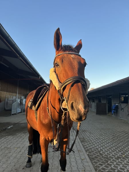Ich suche für meine 13-jährige Stute eine Reitbeteiligung für 2–3 Mal pro Woche. Zu dir : - Du bist dressurambitioniert und möchtest dich gerne weiterentwickeln. - Du reitest sicher mindestens auf A-Niveau. - Du hast Freude an abwechslungsreicher Arbeit wie Bodenarbeit, Spaziergängen oder entspannten Ausritten. - Du liebst die gemeinsame Zeit mit Pferden und bringst Ruhe, Geduld und ein gutes Gespür mit. - Du bist mindestens 16 Jahre alt - Unterricht am Stall möglich und erwünscht bei unserer Trainerin. Zu Satiné : - Satiné ist unter dem Sattel flott und fein zu reiten. - Im Umgang zeigt sie sich von ihrer schönsten Seite: liebevoll, höflich und absolut verlässlich. Auch beim Ausreiten ist sie ein wirklicher Schatz. Für Videos auf Instagram „netti_vani“ vorbeischauen Bei Interesse/ Fragen gerne melden. Liebe Grüße!