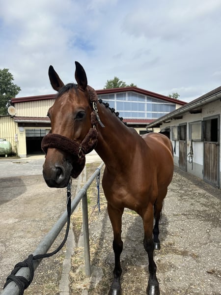 For sale is my 10-year-old gelding, "Rakitic." He is currently competing in show jumping up to the M* level. He is easy to handle on the ground, consistently stays calm over jumps, and is very responsive in every situation. Perfectly suited for beginners and also suitable for children to ride. For more information, feel free to send me a message or call at 015161449244.
