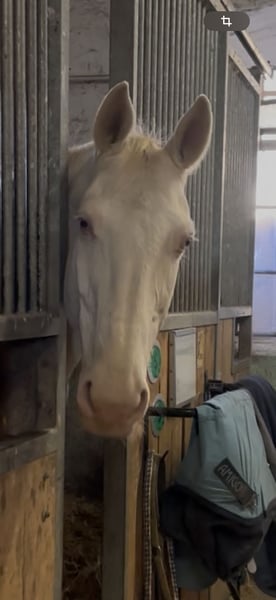 We are selling our Ford Mustang, affectionately nicknamed Froggi, born in 2010, a Czech Warmblood in a stunning Cremello color. We are a well-established riding school near Munich and are looking for a lovely, well-deserved private home for our school horse after some years of service in the school program. Froggi stands approximately 16.3 hands high. He is very well-behaved and suitable for beginners. However, he has mainly been worked indoors by us. We do not typically ride out on trail rides with our school horses, but we occasionally ride him on the outdoor arena. Froggi is trained up to Elementary level in dressage and jumping up to A-level. After many loyal years of service in our riding school, we wish him a loving home. Froggi spends several hours daily on pasture and is housed in a box stall. He has had no health issues during our care and is always fit and motivated. His teeth have been checked and maintained annually. We are happy to arrange a trial ride and a meet-and-greet.