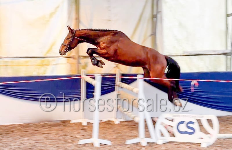 CONQUIST - youngster for smaller parcours or hobby riding Conquist is a nice and communicative youngster with very nice jump and very promising pedigree. Comes directly from breeder’ s hand, shows nice technique and movement, was started under saddle recently (can trot and canter under rider), knows horsemanship communication, is easy to load and transport. Conquist has weak fetlocks - that’ s why we offer him for lower sport, where it should not bother him. Price: 7.000€ More information or videos under +420602862723 https://youtu.be/wpKI0YvW7Go Born 2022, Height: 167cm, pedigree: Conquistador (Clinton) x Zirocco Blue x Sandro Z Location: 37001 Ceske Budejovice, Czech republic. Central Europe. Transport can be provided. *** more horses on my website www.horsesforsale.cz ***