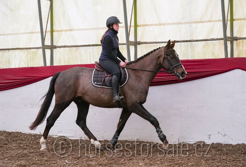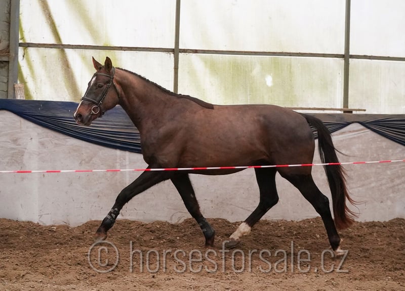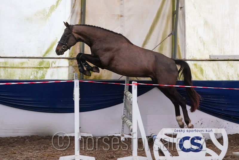KANDIO - attractive youngster by Kannan, allrounder Kandio is a nice and promising youngster with interesting pedigree, equipped with a good jump and nice movement as well. Started under saddle in the winter, now able to do a small course at home, he already took part on a training out of home and he did it well, is ready for his show debut. A horse with nice brain, willing to learn, directly from breeder’s hand. His half-brother out of the same mother was very successful in show jumping ring up to MT 1:40 and is now being ridden by a junior girl. Current x-rays available. Price: 17.000€ More information or videos under +420602862723 https://youtu.be/3vXJJKK7o0M https://youtu.be/bUTQRyqW9t0 Born: 2022, Height: 165cm, pedigree: Kannan x Sobarde E Location: 1,5 hour from Prague, Czech republic, Central Europe. *** more horses on my website www.horsesforsale.cz ***