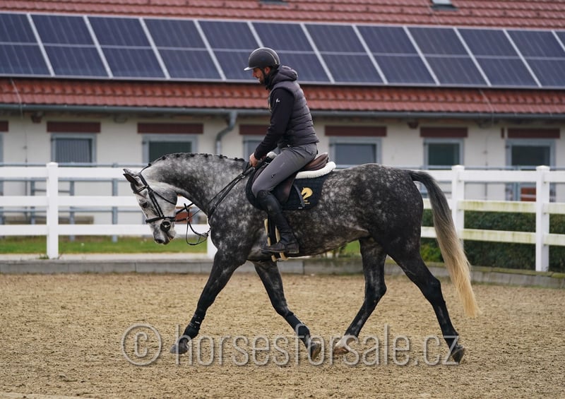 LUCIFER - vielversprechendes Springpferd Lucifer ist ein bildhübsches junges Springpferd mit sehr gutem Sprungablauf. Er ist etwas später ins Training gekommen und hat erst mit 5 seine Grundausbildung absolviert, ist für seinen Turnierdebut bereit. Er läuft schon zu Hause ein kleines Parcour, wobei er tolle Einstellung zeigt, ist motiviert, nicht guckig, weiss immer, wo die obere Stange ist. Eignet sich für einen Reiter, der gewisse Erfahrungen mit Jungpferden hat und sein Potenzial weiterentwickeln kann. RTG-Bilder vorhanden, gesund, korrekt, klar im Kopf, ohne Unarten. Geb.: 2020, Stockmaß: 165cm, Abstammung: Cantesini x Catango Z https://youtu.be/ju0ovHni9L4 Standort: 1 Stunde von Brno, Tschechien, Transport kann organisiert werden. *** weitere Pferde unter www.verkaufspferde.cz ***