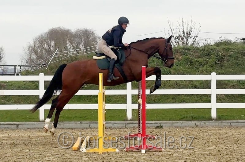 CLASSICO - a real dream horse, hunter/QE prospect with the best brain Classico is an amazing youngster with perfect brain. He has been ridden by a very amateur girl, which has no experience with jumping, but Classico is able to jump a nice course with her despite his age. He is always motivated to jump, doesn’t look any fence, is ready to handle rider’s mistakes which is exceptional for a horse at his age. He shows enough scope for the future, has really very nice character, auto lead changes and is ready for his show debut. Comes directly from breeder’s hand, x-rays are available. Future star for anyone and any ring. Born: 2021, height: 171 cm / 163-17hh, pedigree: Stalypso (Stakkato) x Cassilius https://youtu.be/GHs7amJaTy4 Location: Olomouc, Czech republic. Central Europe. Transport can be provided. *** more horses on my website www.horsesforsale.cz ***
