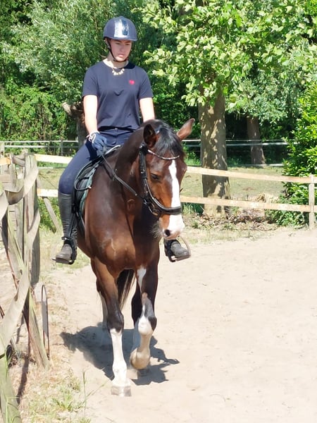 For the right place, the price is slightly negotiable! We would love to see him go to the right home. Unique opportunity for the right rider with feel and a somewhat smaller budget. After much consideration, we have decided to put this beautiful and sweet gelding up for sale. He is an incredibly kind gelding, super easy and simple to handle. Social with both humans and animals. Truly a cuddler and a clown. With a good pedigree. He is a horse that is still very youthful. With a particularly beautiful appearance. He is saddle-trained and lightly ridden, mastering all three basic gaits: walk, trot, canter, and some lateral movements. However, he still needs further training. It is a willing horse that enjoys challenges and variety. Under saddle, he needs a rider who can give him confidence and support him in his uncertainty. He has regularly been out on trail rides, both alone and with others, and is traffic-safe. He has also jumped once and does this obediently. Since the basics need to be solid first, we have not trained this further. He has not yet been trained for driving but that would certainly be possible. In short: a horse with a versatile future. For whom: Definitely potential for amateur sports. Preferably a rider who has experience with continuing the training of young horses. He needs someone who is consistent and clear with aids, making him not suitable for beginners or insecure riders. Character and handling: In handling, he is a well-behaved and easy horse. With an honest and down-to-earth character. He always makes you laugh. He stays outside 24/7 in the summer in a mixed herd, from October 1st to April/May he is in the stable at night. He stands calmly at the grooming area. Special features: This gelding is slightly crampy. You do not see or notice this while riding. Going backwards is no problem for him. He is well-behaved with the farrier. Maintenance: Always properly shod, dewormed, vaccinated, dentist, and physiotherapy. All inspections allowed at the buyer's expense.