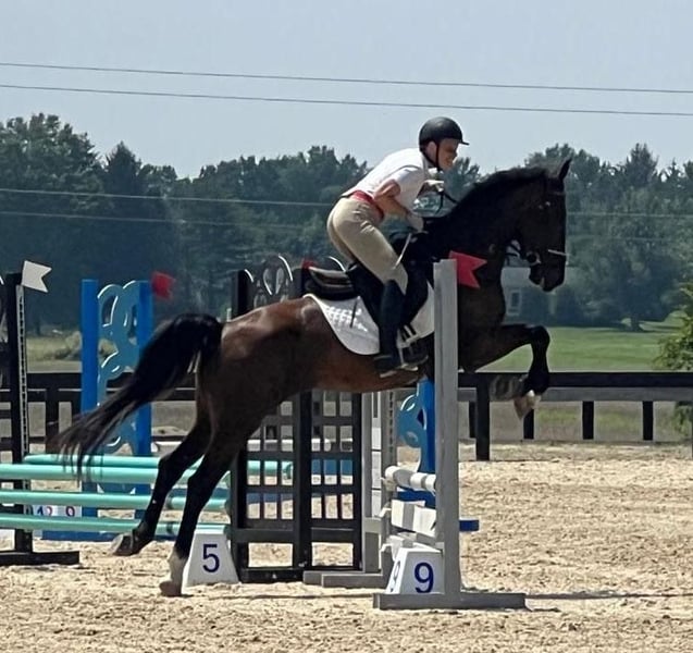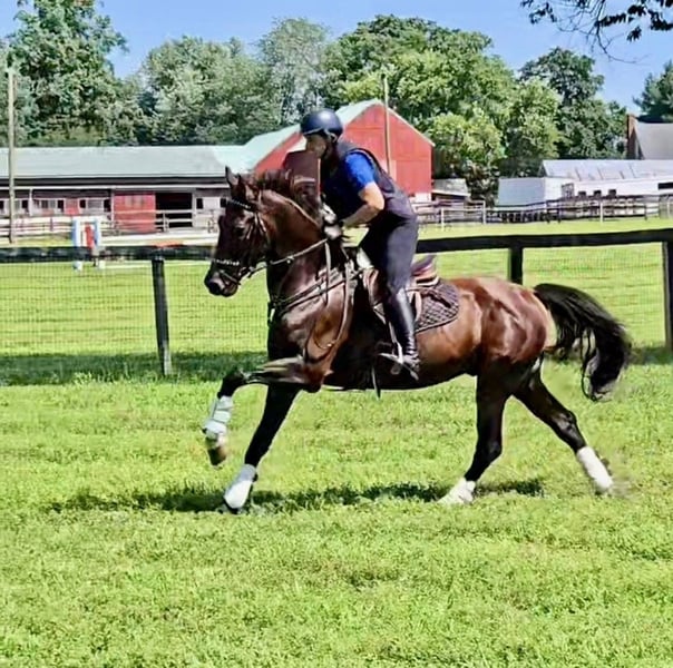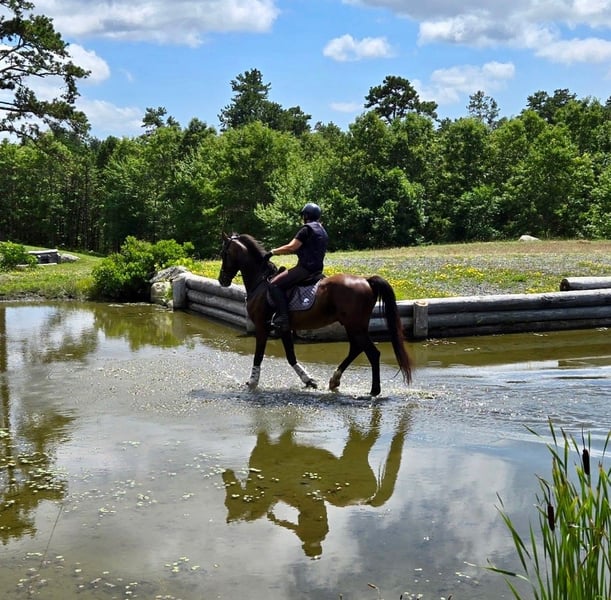 "AVAILABLE ON ONLINE HORSE AUCTION AT www DOT MagicHorseAuction DOT com BIDDING OPEN NOW thru TUESDAY | MARCH 31st! BUY IT NOW AVAILABLE! *Final price will be determined on auction site* CONSIGNOR CONTACT INFO: Hannah Zorn #917-821-4140 LOCATION:917-821-4140" "Coming 6 year old registered DHH gelding, eligible for KWPN registry, standing 16.2hh. Black Tie is an exciting young event prospect with the talent, scope, and foundation to continue moving up the levels. He has shown in cross country, show jumping, and dressage, consistently placing in the ribbons. He has successfully BN eventing, while schooling novice and training and has been brought along slowly and correctly, ensuring he has the confidence and solid foundation needed for a long career. He's competed up to 2'9 jumpers and schooled up to 3’3”. Black Tie is brave on cross country, careful over fences, and balanced on the flat. He shows excellent natural scope, comfortably free jumping 4’3” with room to spare. He's also broke to drive, trail rides well, and learns tricks and games fast making him a fun companion in all aspects. With his exuberance, trainability, and presence, Black Tie is an exciting prospect for a competitive eventing or sport horse program or ambitious amateur looking for their next partner. Up to date on vet, farrier, and dental. Full length videos, many more photos, and video call available. PPE is welcomed at buyer's expense. Best suited for an experienced rider/handler who will continue his development in a consistent program. "