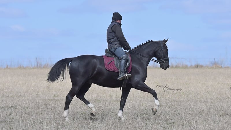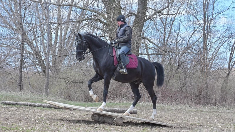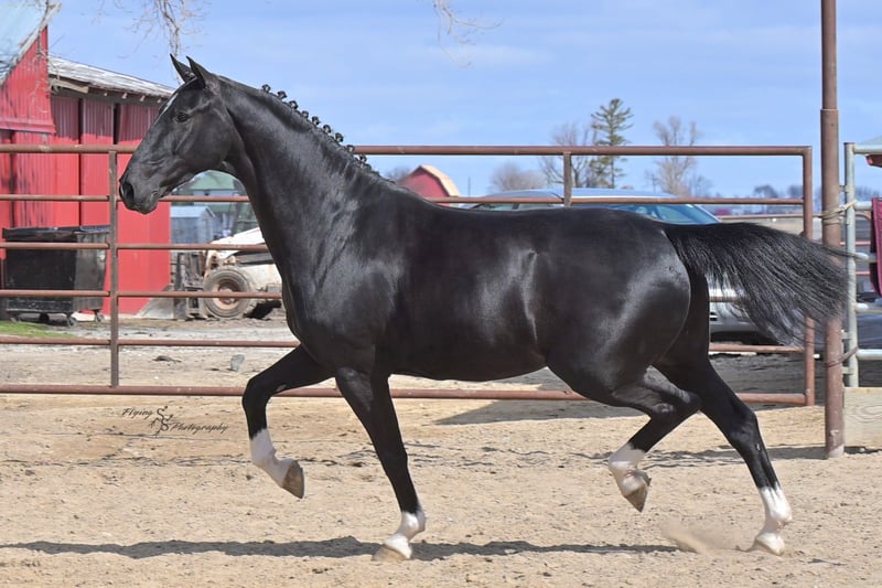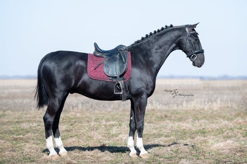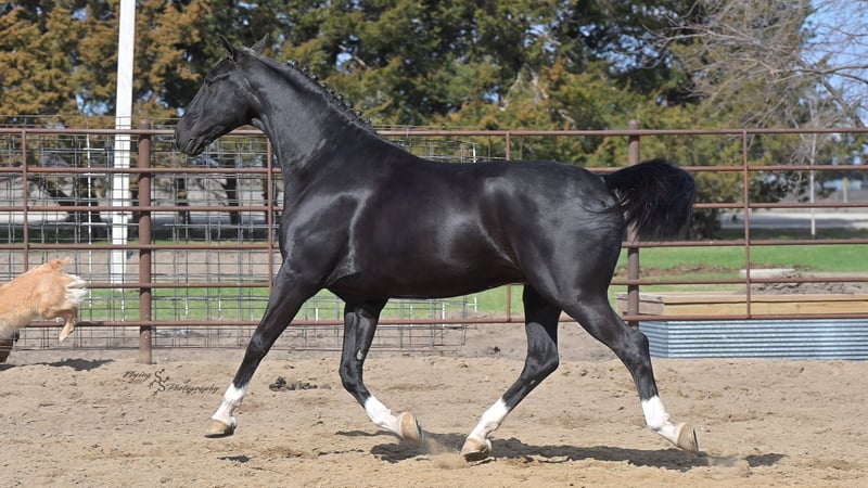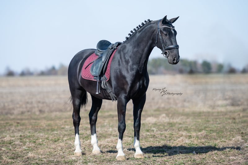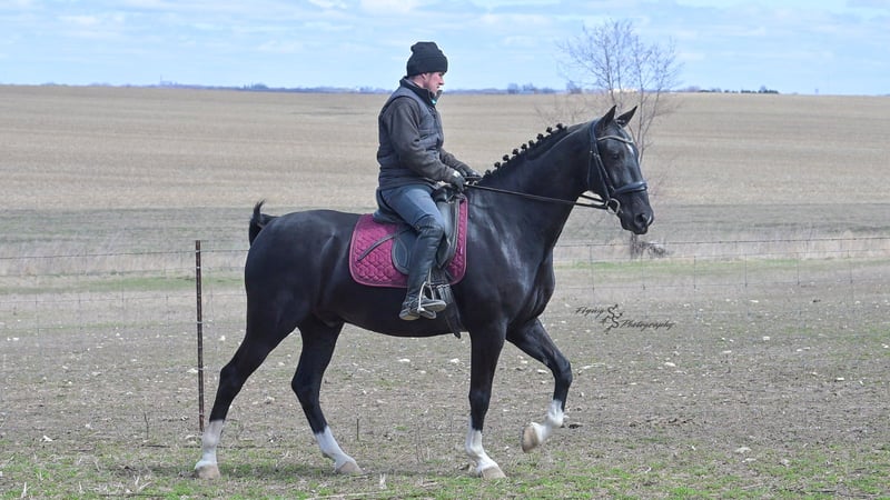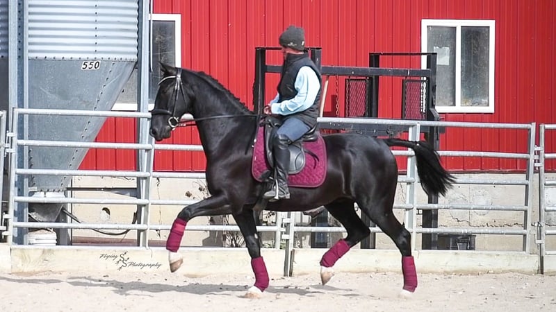 ONLINE-AUKTION Bieten Sie jetzt unter www.PlatinumEquineAuction.com Startgebot: 3.500 USD Auktionsende: 22. Juni 2025 Benötigen Sie ein neues Sattel? Schauen Sie bei White Rock Saddles auf unserer Website oder Facebook vorbei! Smoke ist ein 6-jähriger, reinrassiger niederländischer Wallach mit einer Größe von ca. 1,52 m. Er ist sehr beweglich und ein echtes Naturtalent für Dressur und englisches Vielseitigkeitstraining. Smoke reitet englisch, wurde western geritten und fährt auch Kutsche. Er ist ein vielversprechender Nachwuchs und bereit, in seinem Training den nächsten Schritt zu machen! Mit seinem tiefschwarzen Fell und den markanten Abzeichen zieht Smoke alle Blicke auf sich. Er wurde sowohl in der Halle als auch im Freien geritten, auf der Straße und im Gelände. Er ist verkehrssicher. Smoke hat bereits viele Eindrücke gesammelt und zeigt sich auch außerhalb der Arena zuverlässig. Er überquert Wasser, Logs und bewältigt Hindernisparcours. Er kommt gut mit Pausen zurecht und lässt sich problemlos satteln und reiten. Smoke besitzt die Ausdauer und Kondition, um Leistung zu zeigen, und arbeitet sehr willig unter dem Sattel. Er macht schnelle Fortschritte bei den Manövern und ist ein eleganter Kandidat für den Turniersport. Er kommt gut mit Stall- oder Weidehaltung zurecht und versteht sich mit anderen Pferden. Für den Schmied ist er ein vollständiger Gentleman und sehr leicht zu beschlagen. Der freundliche Wallach ist im Umgang sehr angenehm, lässt sich gut am Boden führen und steht geduldig quer angebunden sowie beim Aufsatteln. Für einen fortgeschrittenen Reiter ist er ideal, um seine Ausbildung weiter zu vertiefen. Unter dem Sattel fühlt sich Smoke am wohlsten, und dort wurde auch der Schwerpunkt seiner Ausbildung gelegt. Sein eleganter Stil fällt sofort ins Auge! Wenn Sie auf der Suche nach einem schönen Dressurpferd oder Freizeitpartner sind, sollten Sie Smoke nicht verpassen. Er ist aktuell auf Coggins-Test und hat eine Untersuchung auf Röntgenbilder vorliegen. Bei Fragen oder wenn Sie Smoke vor Ende der Auktion persönlich kennenlernen möchten, rufen Sie bitte Edwin Raber unter 319-283-0616 an. Standort: Fairbank, Iowa.