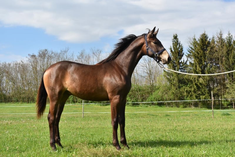 Puledri di falco scuro di 12 mesi (vero nero fumoso) in vendita direttamente dall'allevatore. Ha un esercizio extra. 30 anni al servizio dell'allevamento di cavalli! Abbiamo diverse referenze nell'UE!
