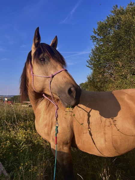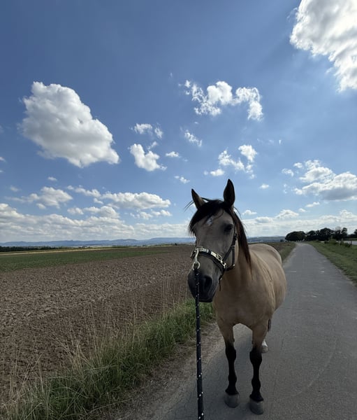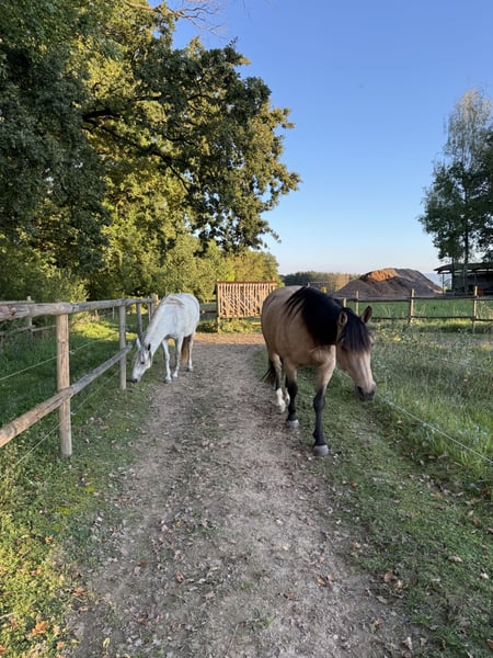 Für meine 14-jährige Stute Hope suche ich eine zuverlässige Pflegebeteiligung, eventuell später auch als Reitbeteiligung. Hope ist eine brave, fein ausgebildete Stute. Sowohl vom Boden (in Freiheitsdressur, Handarbeit etc.) als auch unter dem Sattel arbeitet sie mit Freude und Aufmerksamkeit. Standort: Filderstadt-Harthausen 1–2x pro Woche ✨Was ich mir wünsche✨ Du solltest Erfahrung im Umgang mit Pferden und in der Arbeit vom Boden mitbringen. Mir ist Zuverlässigkeit und ein liebevoller Umgang besonders wichtig. Am Anfang unterstütze ich dich und würde dir auch immer mal wieder Unterricht geben! Hope ist kein Anfängerpferd deshalb solltest du dich auch mal durchsetzen können. Wenn man sie dann auf seiner Seite hat, kann man jedoch viel von ihr lernen! Sie ist sowohl vom Boden als auch im Sattel sehr gut ausgebildet. Für den Anfang suche ich aber jemanden der sie vom Boden aus mit bewegt! Sie steht mit meiner anderen Stute in einem Offenstall in Harthausen. Am Hof gibt es einen Reitplatz, der auch im Winter benutzbar ist. Wenn du Freude an feiner, harmonischer Arbeit mit dem Pferd hast und Lust hast mit Hope regelmäßig Zeit zu verbringen, freue ich mich über eine Nachricht von dir!✨