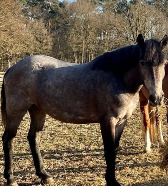 Zum Verkauf steht eine 5 jährige Ungarische Ponystute. Miranda ist ca. 147 cm groß und deckt mit ihrem kräftigen Körpetbau auch größere Reiter gut ab. Sie läuft sicher in allen 3 Gga, kennt Longe und Ausritte. Miranda ist ein sehr entspannter und unkomplizierte Typ und ist kaum aus der Ruhe zu bringen. Bei uns wurde sie von 3 verschiedenen Personen geritten, daher könnten wir uns sie auch super im Schulbetrieb vorstellen. Kinder saßen bereits auch schon problemlos drauf. Sie zeigt sich im Gelände sehr brav. Im Trab ist sie sehr sitzbequem und lässt sich gut an den Zügel stellen. Beim Freispringen zeigt sie einen guten Sprung. Aus zeittechnischen Gründen wurde sie bisher nicht weiter beim Springen gefördert. Wir gehen allerdings davon aus, dass sie sich bei richtiger Förderung sehr gut im Springsport macht. Anhänger fahren und Schmied sind kein Problem. Miranda ist regelmäßig entwurmt worden. Bei Interesse können wir gerne einen Termin vereinbaren, damit Sie Miranda kennen lernen können. Für ein Probereiten berechnen wir 15 € Aufwandspauschale, die beim Kauf natürlich gut geschrieben werden. Gegen Aufpreis kann das Equipment mit abgegeben werden. Preis VB