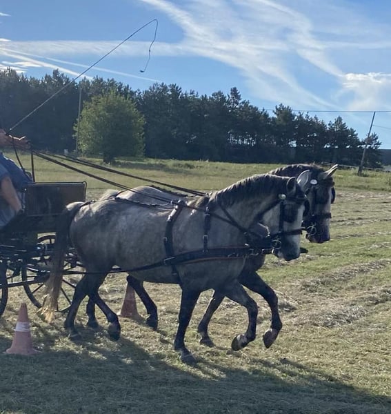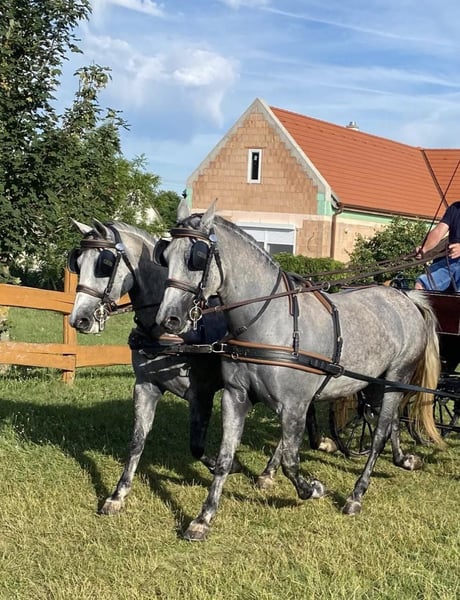 Für weitere Informationen kontaktieren Sie mich bitte über WHATSAPP (0036306800863) oder per E-Mail (hajagosn92@gmail.com). - 151-153 cm - talentiertes Paar - kooperative und zuverlässige Pferde - leicht zu handhaben - zuverlässig im Verkehr und auch auf den Feldern - mit Wettkampferfahrung