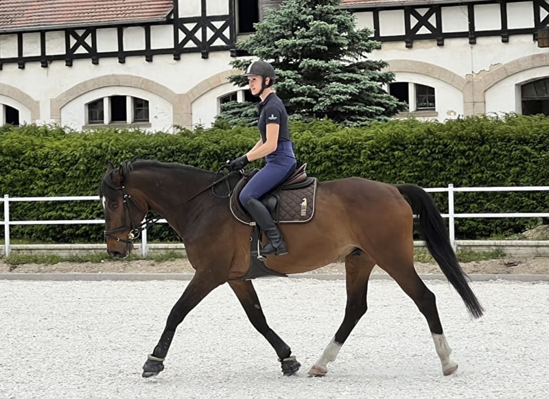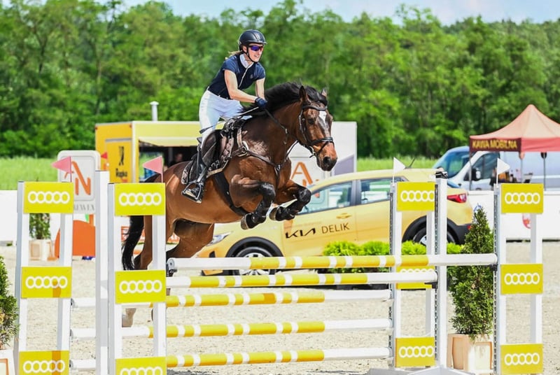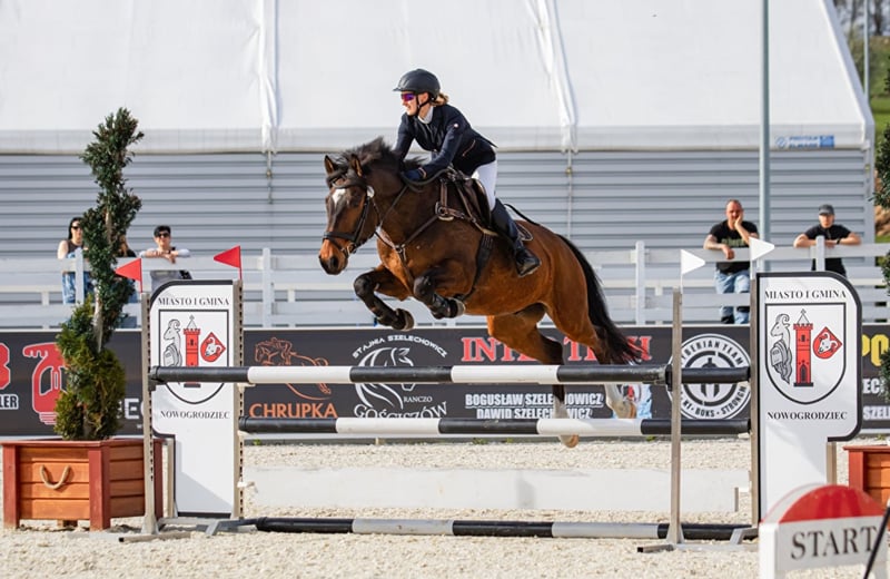 For sale: a 12-year-old gelding of Hungarian sport horse breed. Suitable for an experienced rider. The horse is forward-going and well-versed in competitions. FEI passport available. Under the regular care of a physiotherapist, blacksmith, and dentist. Daily turnout on pasture. Constantly in jumping training. The horse tends to swallow in stressful situations, with a history of healed ulcers. Located at Książ Stallion Station.