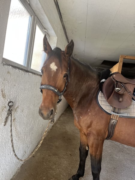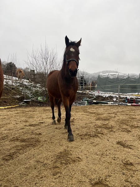 Zum Verkauf steht ein wunderschöner ungarischer Sportpferd-Wallach, geboren im Jahr 2019. Mit einem Stockmaß von 158 cm ist er der ideale Partner für Freizeitaktivitäten. Calano ist im Mai 2024 von Ungarn zu uns gekommen. Da wir Familienzuwachs hatten, fehlt uns leider die Zeit für ihn, weshalb wir nun ein neues Zuhause für ihn suchen. Er ist brav im Umgang, neugierig und sehr menschenbezogen, kennt Anhänger und Hufschmied. Momentan steht er bei uns im Offenstall. Er ist longiert und kennt Reitergewicht, sucht aber eine erfahrene Person, welche ihn selbst noch ausbildet. Für Anfänger ist er eher nicht geeignet, da er selbst noch viel lernen muss. Ein persönliches Kennenlernen ist nach Absprache möglich.