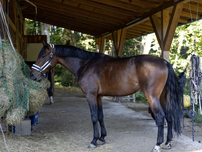 Wir verkaufen hier unseren Karli. Karl ist ein 1,65 m großer, 6 jähriger Wallach der für jeden Spaß zu haben ist. Egal ob auf dem Turnier (bis A-springen gelaufen) oder im Gelände ist er auch von schwächeren Reiter immer zu Händeln und super brav. Unarten wie bocken oder steigen kennt er nicht, auch beim Schmied oder im Hänger ist er immer super gechillt. Karl ist noch NIE stehen geblieben und so springt er auch Wassergräben oder kleine Baumstämme im Gelände ohne zu zucken. Wir verkaufen Karl rein aus Zeitmangel und auch nur in die allerbesten Hände !! Wir können ihn uns gut auch für schwächere oder jüngere Reiter vorstellen, aber aufgrund seines Alters natürlich dann mit Unterstützung. Auch für die Dressur wäre er wegen seiner super schönen Gänge und Erscheinungsbild sicher sehr interessant, allerdings sind wir Springreiter und haben ihn nur springmäßig geritten und gefördert. Wer also einen richtig braven Allrounder, eine Kumpel ein super schönes Pferd und obendrein noch spaß beim täglichen reiten haben möchte hat mit Karl sicher das große Los gezogen. Weiteres: Karl hat einen TÜV mit Röntgenbilder. (3,5 jährig gemacht, kann versendet werden) Er war noch nie lahm oder krank. Box und Offenstall in der Gruppe gewöhnt. (mit allen Pferden immer verträglich) Karl wird ausschließlich an Private Personen / Endplatz verkauft, nicht als Sportgerät und KEINE Händler !! Anfragen gerne an 01626542204