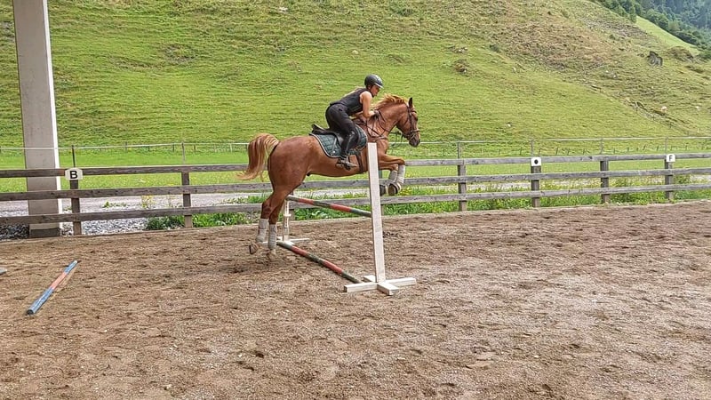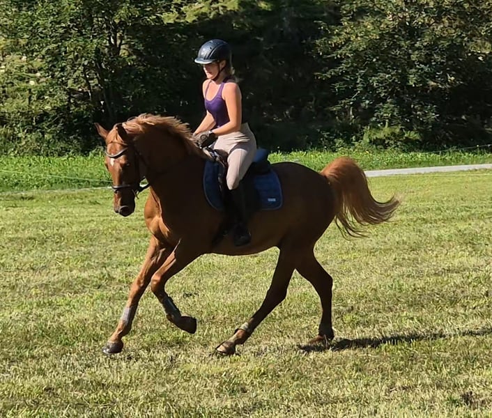 Monte ist ein verschmuster und liebevoller Fuchswallach. Mit seinen schwungvollen und elastischen Trab und einer guten bergauf Galoppade, gibt er den Reiter ein super Reitgefühl. Er ist sehr leicht in der Hand und bemüht sich immer zu gefallen. Am Sprung hat er ziemlich viel Go. Deswegen braucht er in dieser Diziplin einen Reiter der schon mehr Erfahrung mitbringt. Momentan ist er barhuf. Er ist schmiede - und verladefromm und wurde regelmäßig entwurmt und geimpft.