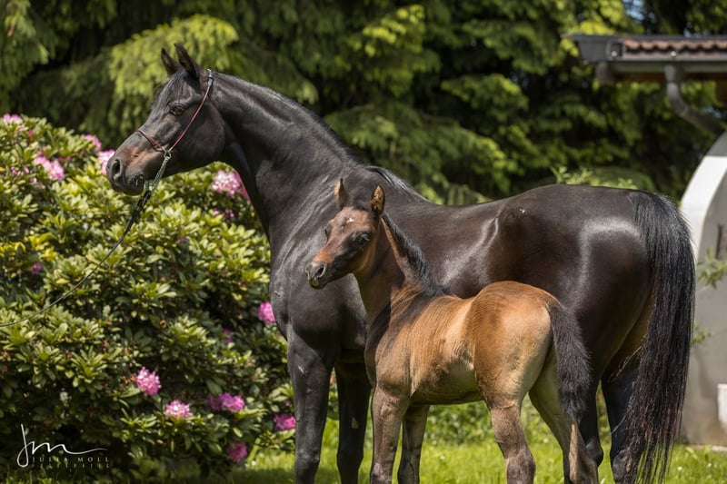 Histrion Qahira impresses with his type and correctness, and he comes from the best pure Spanish bloodlines. Thus, such recommends our youngster not only as a stallion candidate but also as a riding horse for all disciplines. His dam Ultramar Qahira has already produced excellent offspring, her eldest son is predicted to have a great sporting career by several trainers and judges and has confirmed this with placings in dressage A and jumping E. Our thoroughbred Arabian horses have been focused on performance for generations and have proven themselves in the classic discipline of versatility and are not just "versatile" in use!! In addition, the purely Spanish Arabian is the rarest of all thoroughbred Arabians, accounting for only 0.5% of the total population. To this end, the all-Spanish thoroughbred Arabian has always been drawn to riding characteristics, hardness, durability, bone strength and character. By buying a purely Spanish Arabian thoroughbred, you are acquiring something unique, something special!